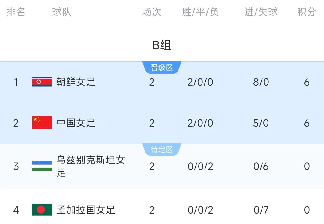 女足亚洲杯中国女足3-0中亚劲旅,对手零射门!最新出线形势出炉! 在女足亚洲杯的一场比赛中,中国女足在第二场小组赛里表现出色,最终以3球完胜中亚劲旅乌兹别克斯坦女足。相比于上一场2-0孟加拉国女足的比赛,这场比赛的表现确实比上一场好了很多。根据赛后的技术统计,对手在90分钟内没有任何一脚射门,而中国女足多达22脚射门。这场比赛过后中国女足也提前拿到小组出线权。 当然,中国女足想要在淘汰赛里拿到好的顺位,那就必须在最后一场的比赛里击败朝鲜女足。让我们给中国女足加油吧。