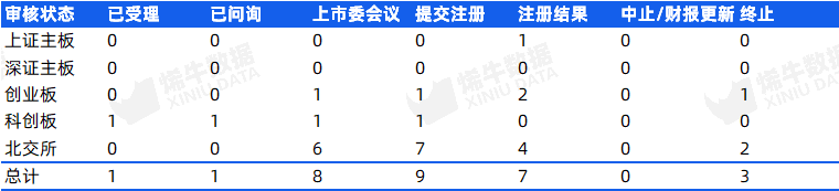2026年2月已受理企业1家,已问询企业1家,上会企业8家,提交注册企业9家,注册结果7家,中止及财报更新0家,终止3家,整体IPO审核状态如下: