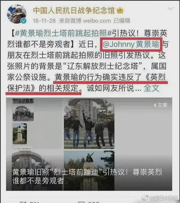 黄景瑜 金晨《名川有知夏》也开始闹了吗?听说男主粉丝投诉女主车祸逃逸违规,要把女主撕走…女主粉这边也开始爆嘿料了,将黄景瑜烈士墓前跳跃的图到处贴,之前还被点名说违反英烈保护法