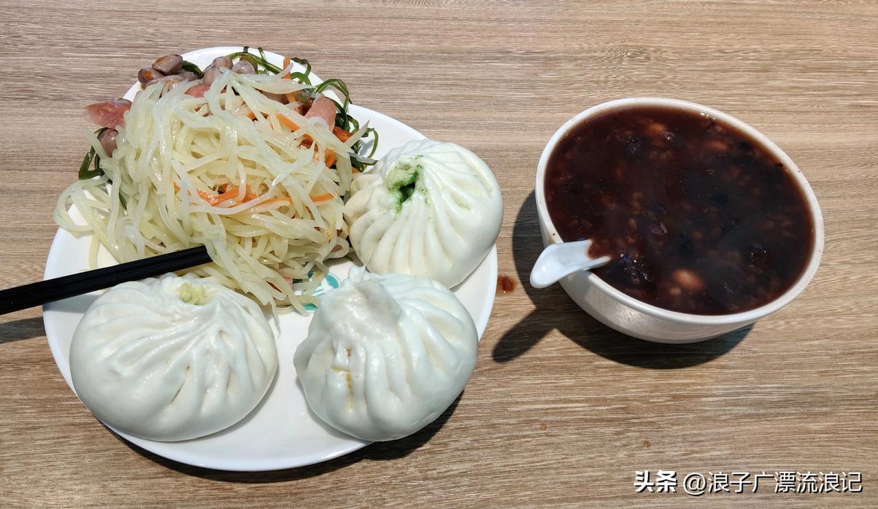 去淄博张店区玩,在商场东路的包子客狠狠吃了一波实惠!他家的韭菜鸡蛋包真的绝,个头超大,咬一口满满都是新鲜韭菜和鸡蛋的香味,而且皮薄馅多,吃起来超满足。 他家的桂圆红枣八宝粥也很不错,香甜可口,喝着暖乎乎的。还有3元一小盘的凉菜,种类丰富,清爽解腻。我一口气炫了3个韭菜鸡蛋包,再配上粥和凉菜,一顿下来才花了12元。这性价比,简直无敌了!强烈推荐大家去尝尝!