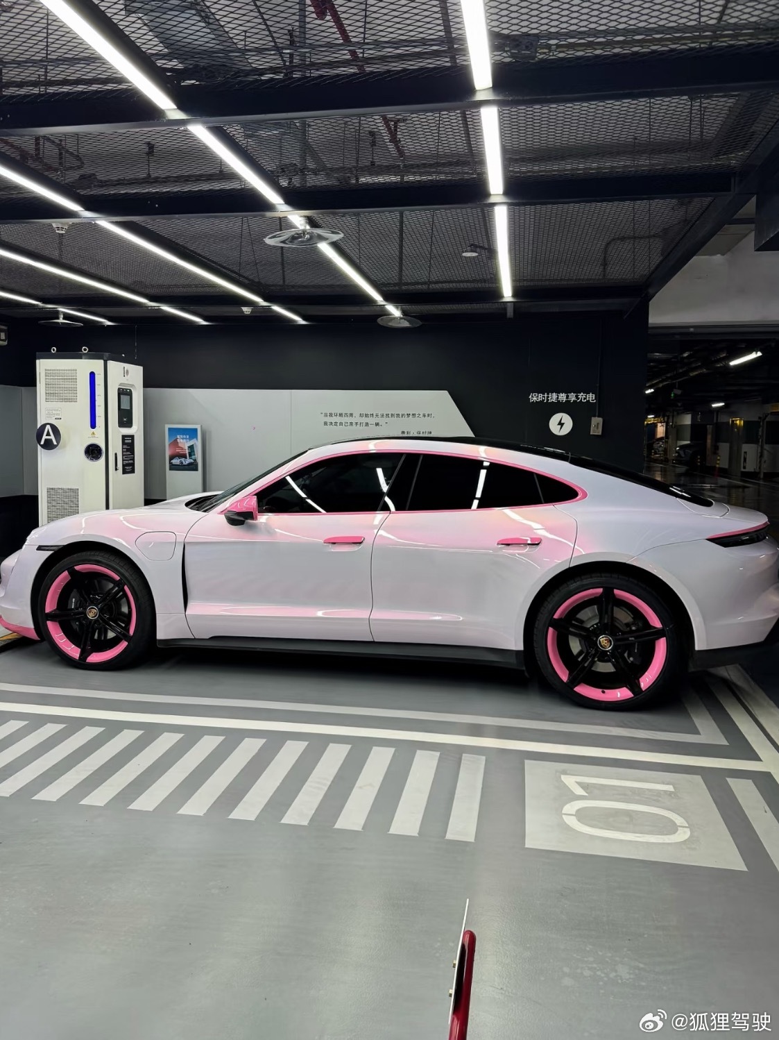 这配色的Taycan偷吃了多少草莓蛋糕啊🍰拼色也太好看了!老板说是花悦粉