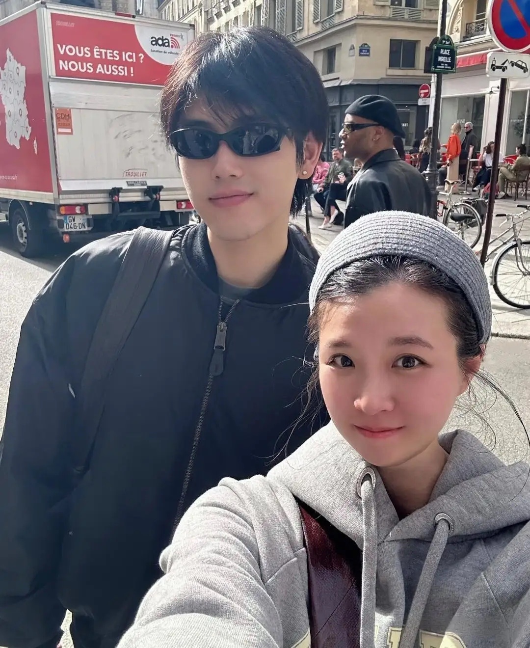 网友法国偶遇陈飞宇吃麻辣烫看见她举起手机,不但大大方方看镜头了,还给她比了个剪刀