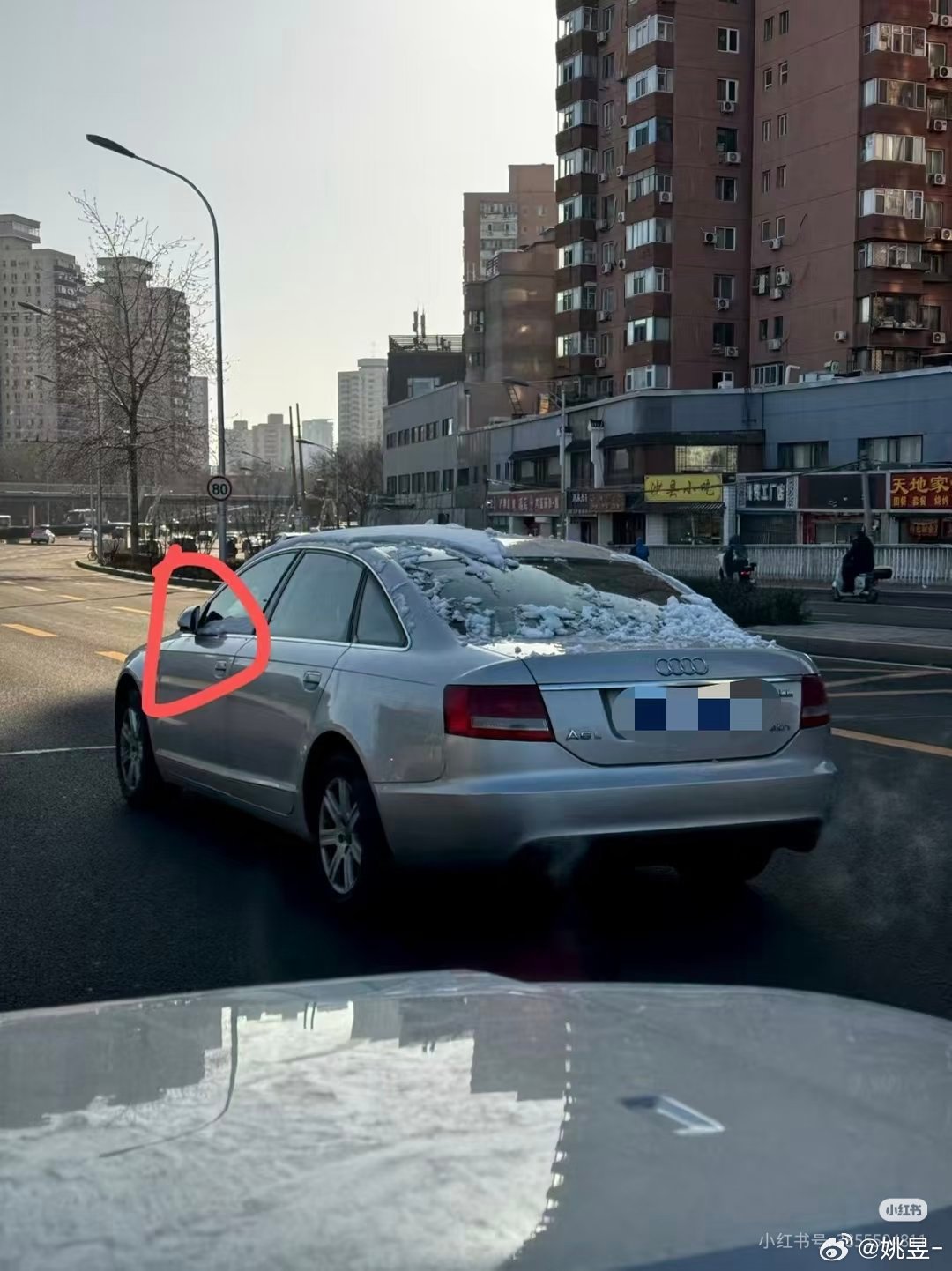 北京快速路,后视镜没开,积雪没除……这么开上路,是一点不对其他交通参与者负责啊