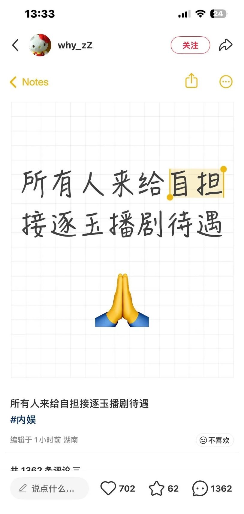 网友辣评:给自担接逐玉播剧待遇!来看看这待遇如何逐玉 顶级待遇逐玉开播