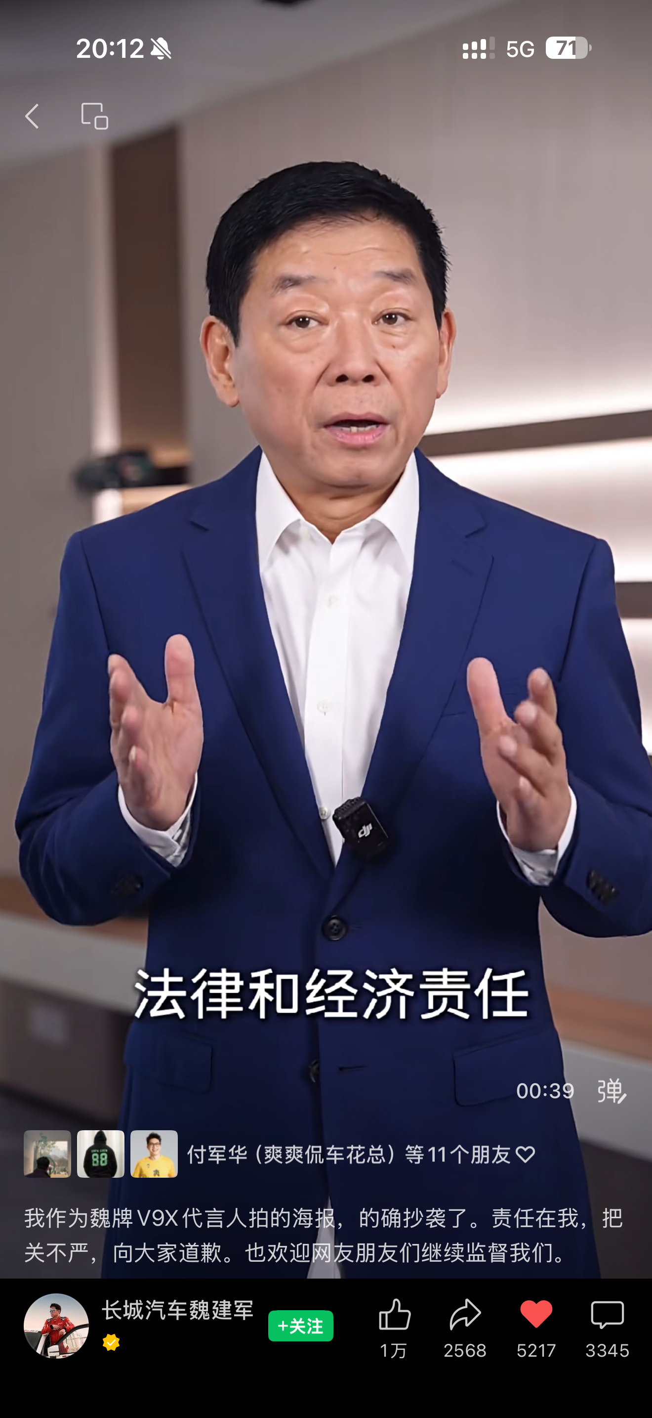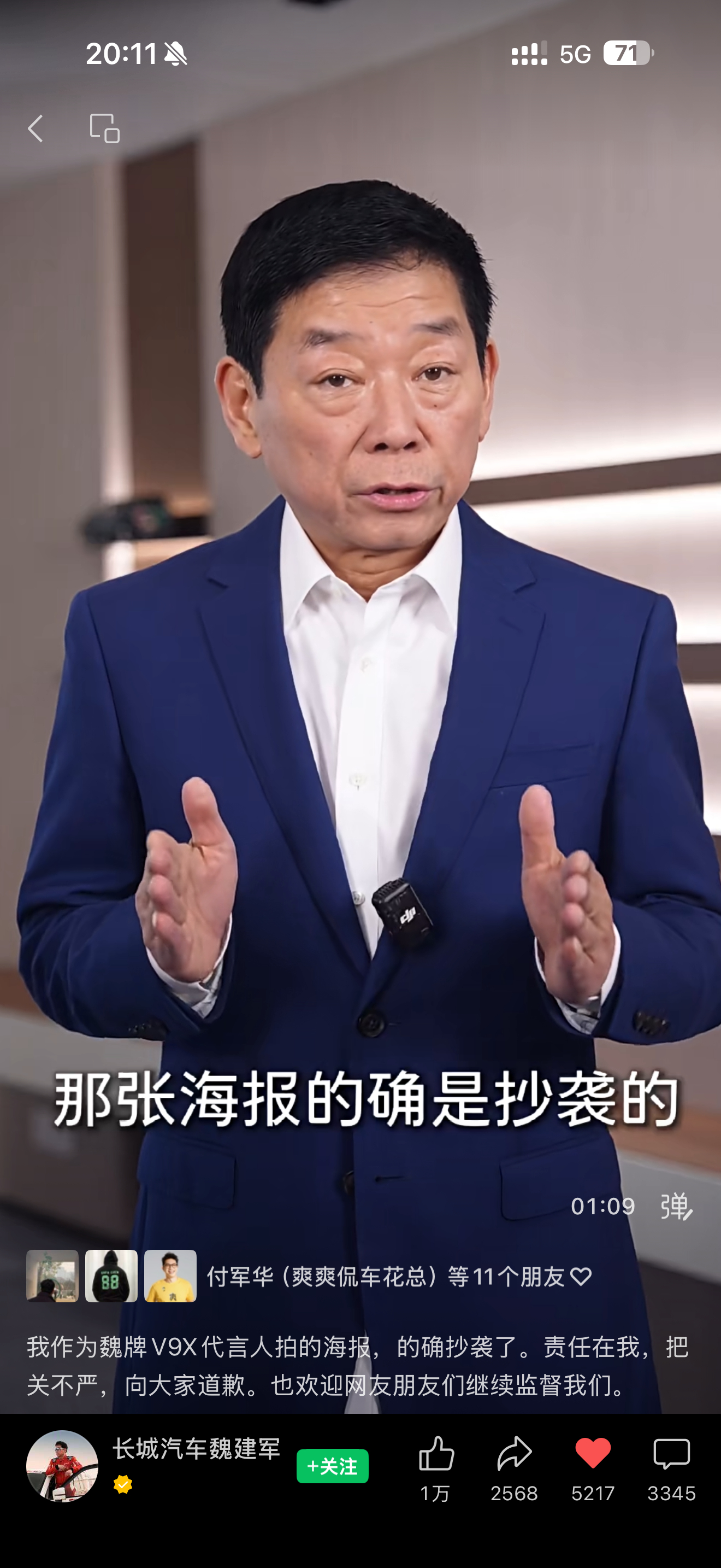 魏建军道歉 魏建军魏牌V9X的海报被指抄袭路虎之后,魏建军直接出来发视频道歉。