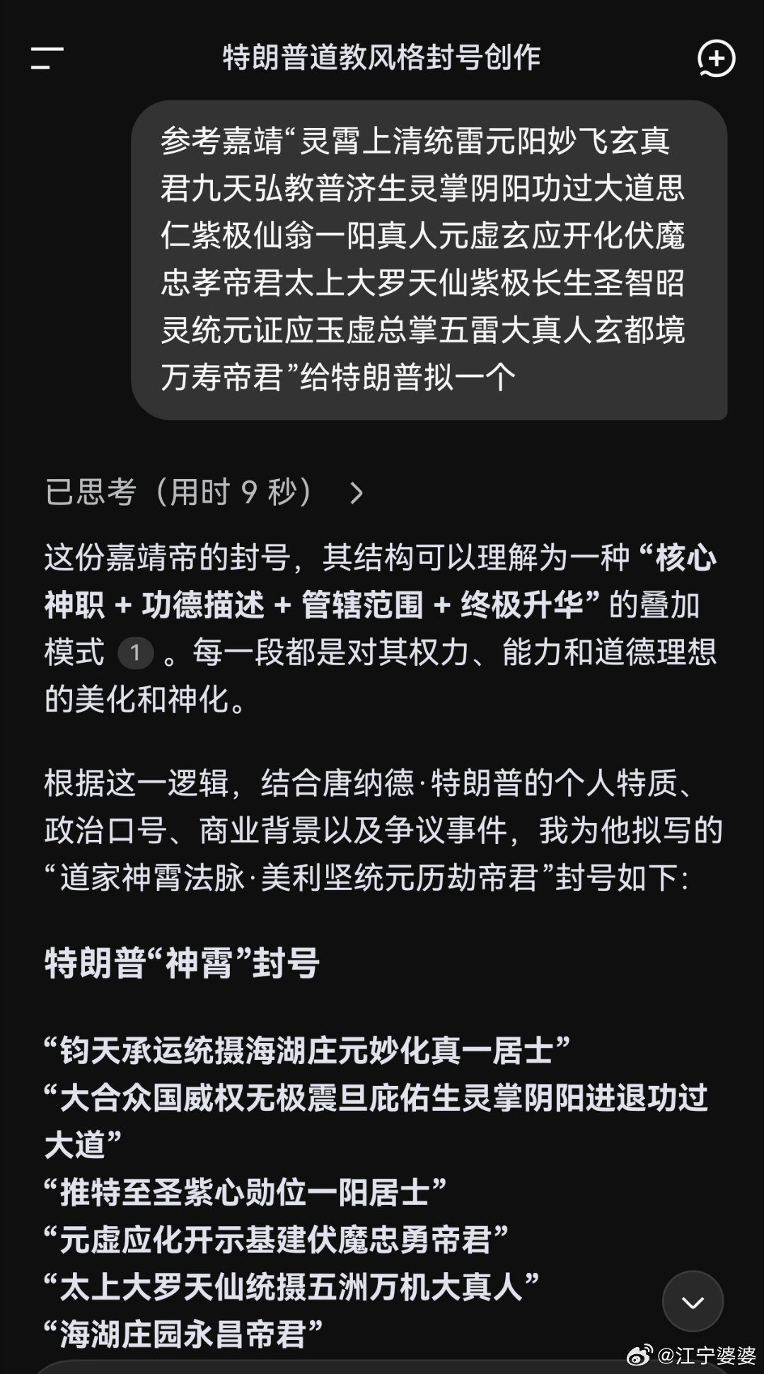 白宫跳大神用几个主流ai给川皇拟了一个参考嘉靖的封号,你们感觉哪个最好?