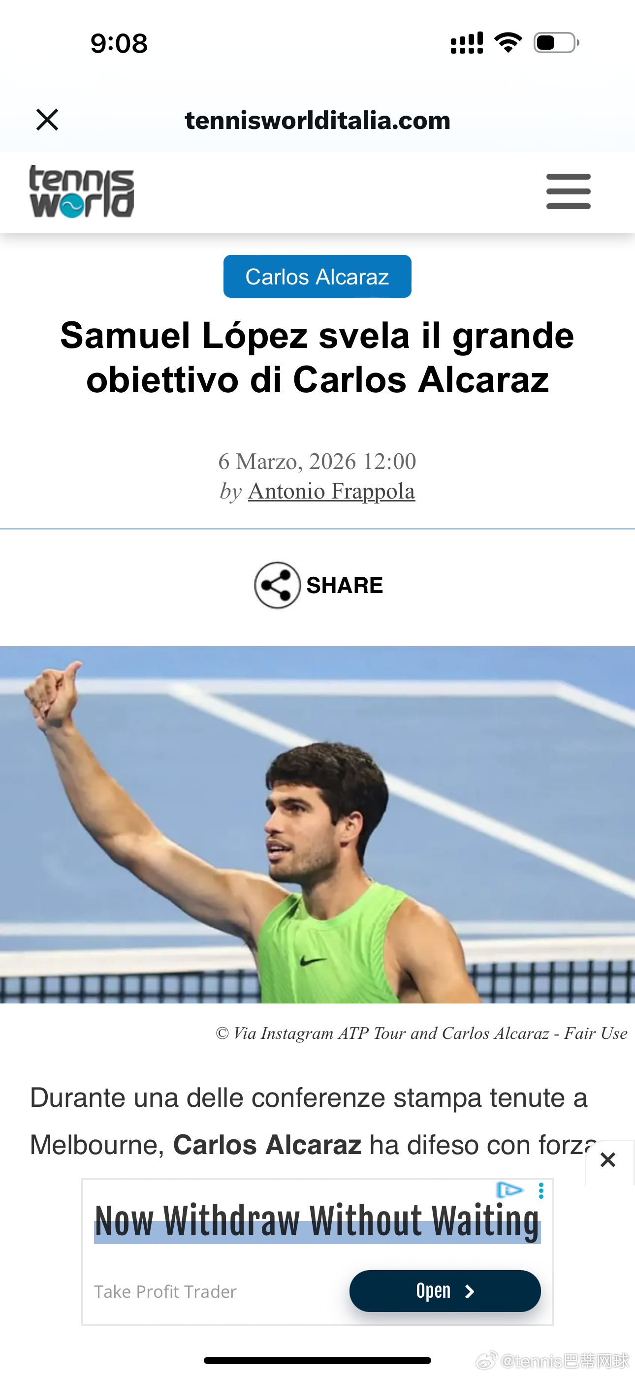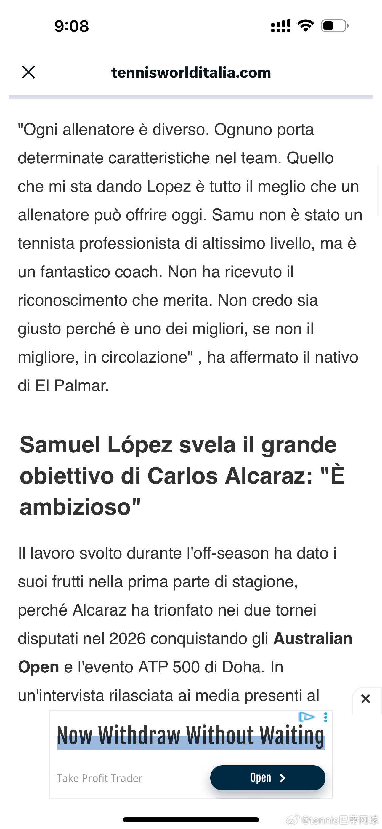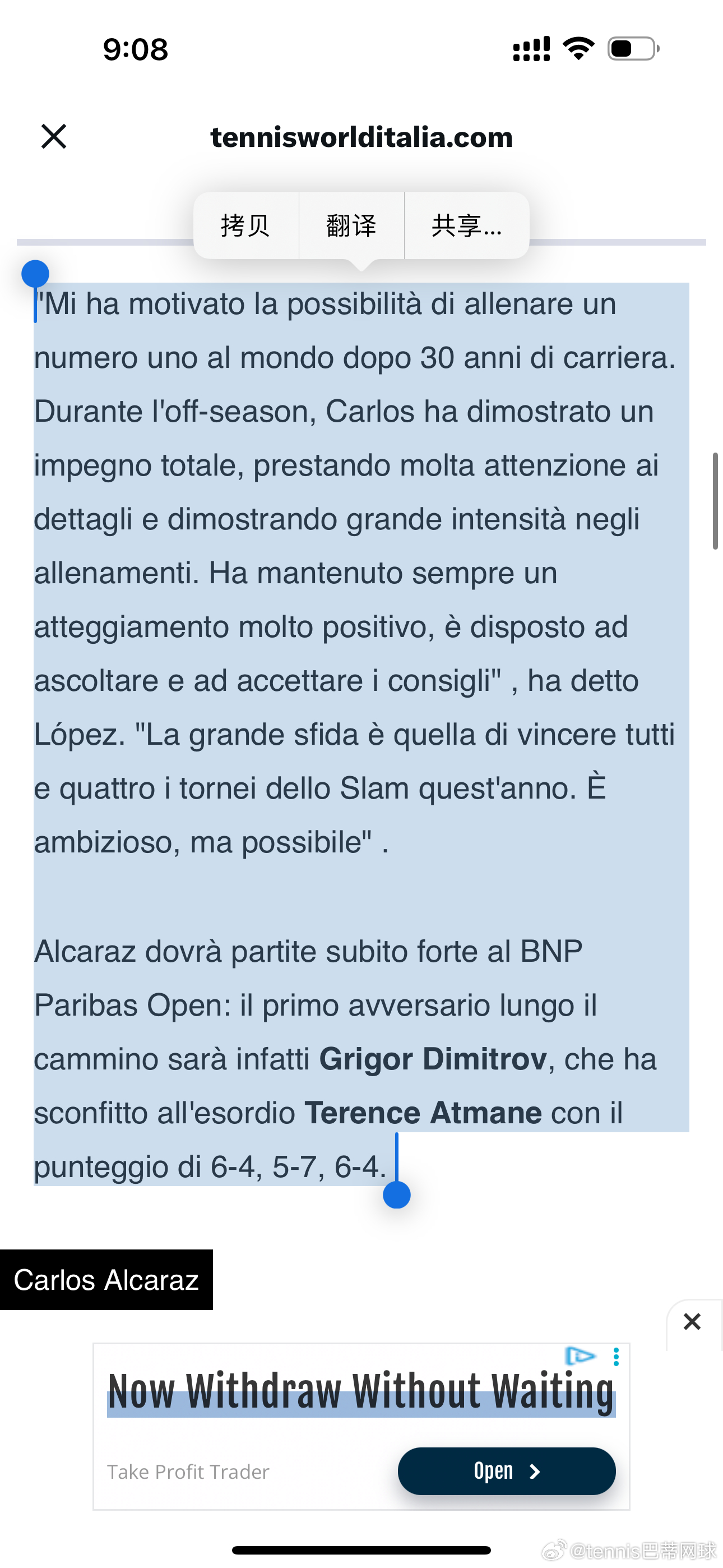 洛佩兹(阿尔卡拉斯沉默寡言的教练):“今年的挑战是赢得全部四大满贯。这很有难度,但并非不可能。”