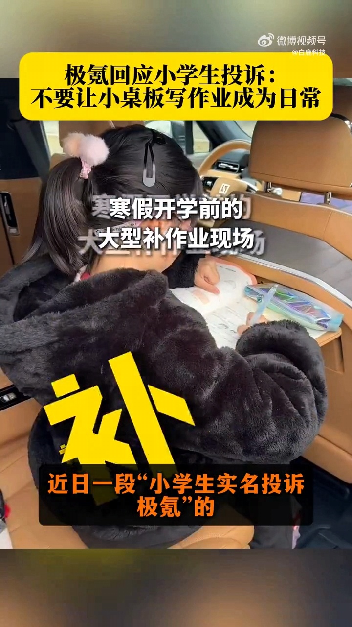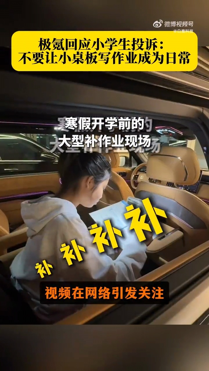 极氪回应小学生投诉投诉的原因就是车辆的小桌板成了补寒假作业的地方,虽然看似趣味性十足,但是深层原因应该重视。孩子为作业所苦恼,怎么才能沉底摆脱,是不是应该更大限度的给孩子减负?家长是不是应该更好的引导,而不是这样临时抱佛脚。