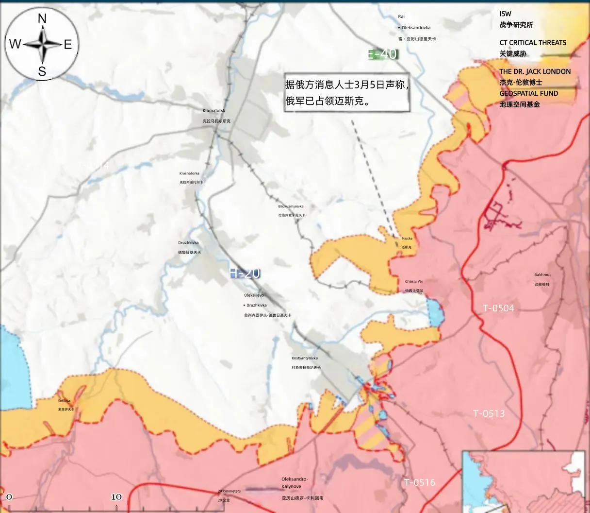 决战双子城之外围争夺:俄军战场通信恢复到星链断网前的60%,乌军在康城推进 俄罗斯国防部3月5日宣布,俄军已攻占利曼西北的亚罗瓦,战功归于莫斯科军区第1近卫坦克集团军第2摩步师第1近卫摩步团。俄军事博主称,俄军在利曼西侧推进,并突入斯拉维扬斯克东南的新费多里夫卡与尼基福里夫卡。 地理定位视频证实,乌军于近日在康斯坦丁诺夫卡东南及南部取得推进,为当前双子城战场乌军最具实质意义的战线调整。 消息显示,俄军3月5日宣称攻占德鲁日科夫卡东侧的迈斯克。俄方同步修正渗透与控制区域:3月3日地理定位画面显示,俄军在康城东南打击乌军人员,此地与此前评估的俄军推进区重合;俄军亦在康城南部及东南打击乌军阵地,印证俄方此前宣称的控制范围。 俄军事博主称,乌军在迈斯克以北及德鲁日科夫卡东南的维罗柳比夫卡实施反击。 乌军在康斯坦丁诺夫卡—德鲁日科夫卡战区的营长3月5日证实,俄军通信能力已恢复至星链受限前50%—60%,并在战术制高点架设Wi‑Fi桥与定向天线,指挥与协同效率显著回升。