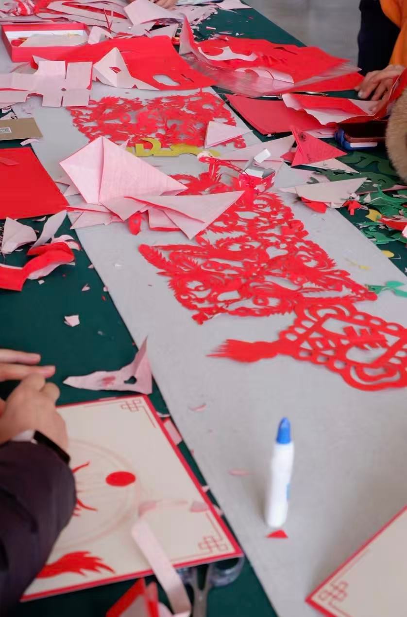 秦岭笑谈 【纸上生花忆初心,非遗剪纸传薪火】曲阜师范大学寒假社会实践三下乡社会实践 2026年1月26日,曲阜师范大学网络空间安全学院青禾拾遗实践队走进晋中平遥古城,以剪纸非遗技艺为笔,在传承红色基因与传统文化的沃土上,勾勒文化传承新画卷。 实践队员化身“文化传承讲解员”,结合场馆内红色故事、馆藏物品,从革命时期剪纸艺术的作用(如传递情报、宣传革命等 )、非遗剪纸与红色精神的交融、传统剪纸技艺在红色文化传播中的体现三个角度,为参观者展开沉浸式讲解。展柜中留存的革命时期剪纸作品,与背后蕴含的红色故事交相辉映,让大家在聆听中感受红色精神与传统技艺碰撞出的独特火花。 随后的非遗体验环节,队员们带来多样剪纸技艺展示,从传统吉祥纹样剪纸到融入红色元素(如党旗、革命标语等 )的创新剪纸,细细讲解剪纸艺术在岁月流转中的传承与发展。大家动手参与简单剪纸制作,指尖裁剪出的不仅是纸张造型,更让红色记忆与非遗温度相呼应,为非遗传承赋予更鲜活的表达。 此次活动,是实践队以红色场馆为阵地、非遗剪纸为纽带,连接历史与当下的有益尝试。