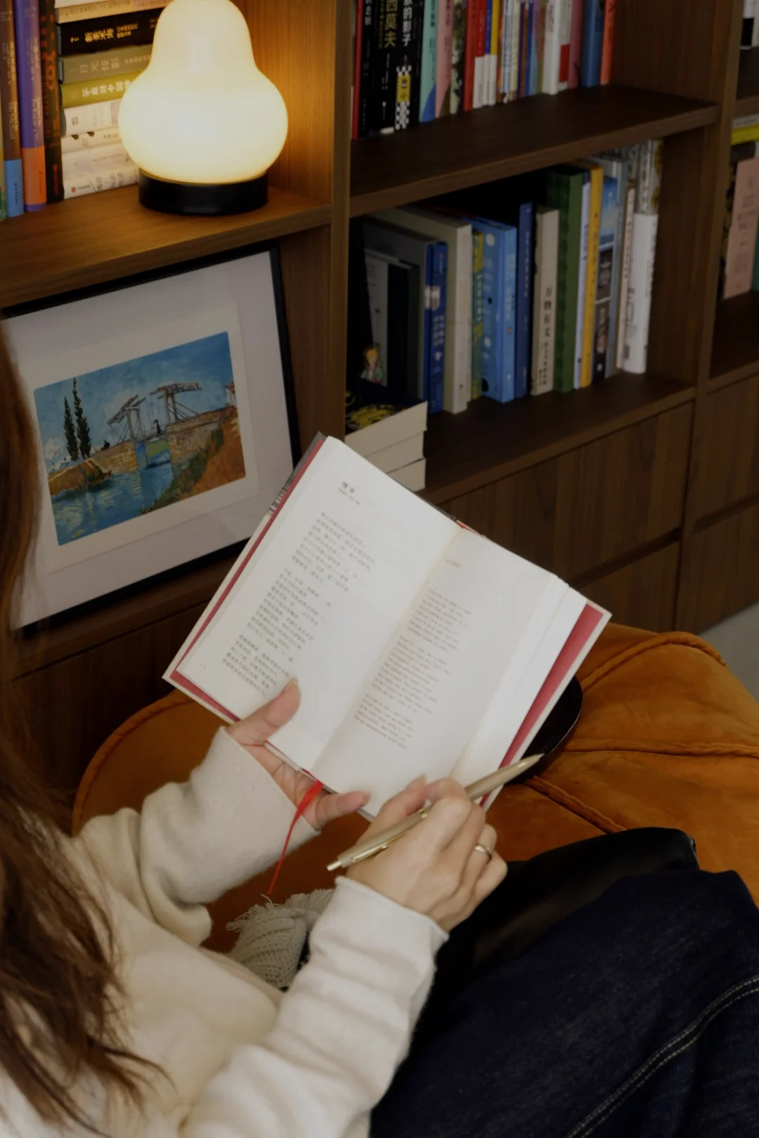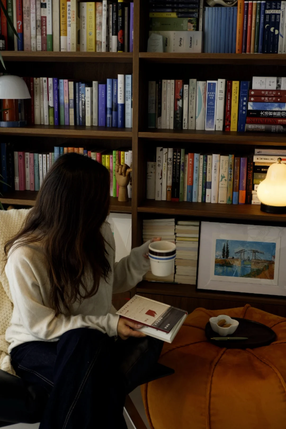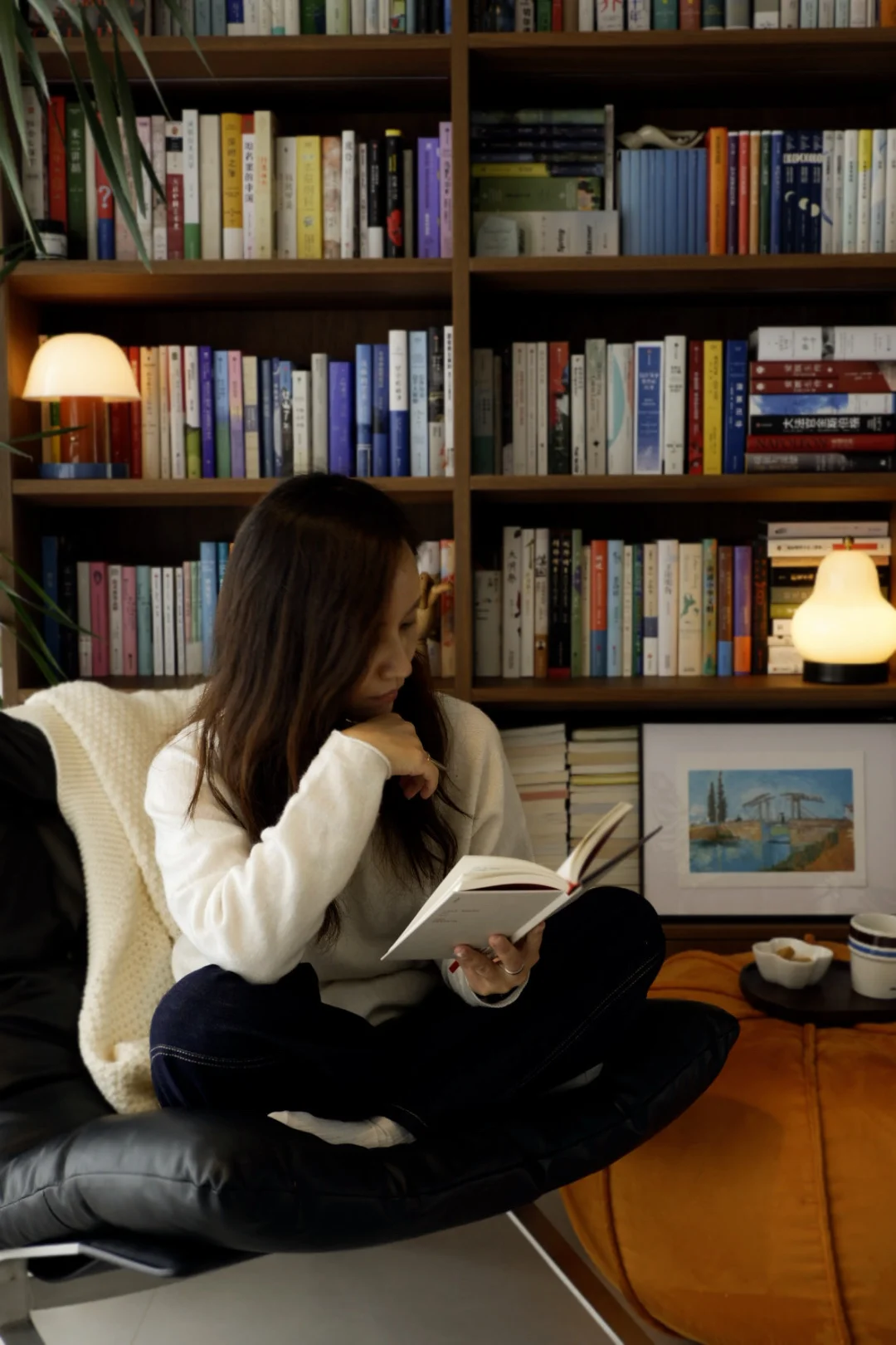 我喜欢拉上白色的纱帘,把空间里各个角落的台灯、落地灯打开,在散落光源汇聚的暖调氛围里,把自己全然交给一本书。