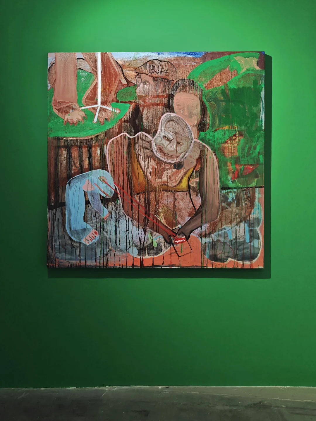 ▫️系列绘画受敦煌壁画启发,以反复擦拭的肌理定格狂欢瞬间,诠释道家「混沌即潜能」的美学内核