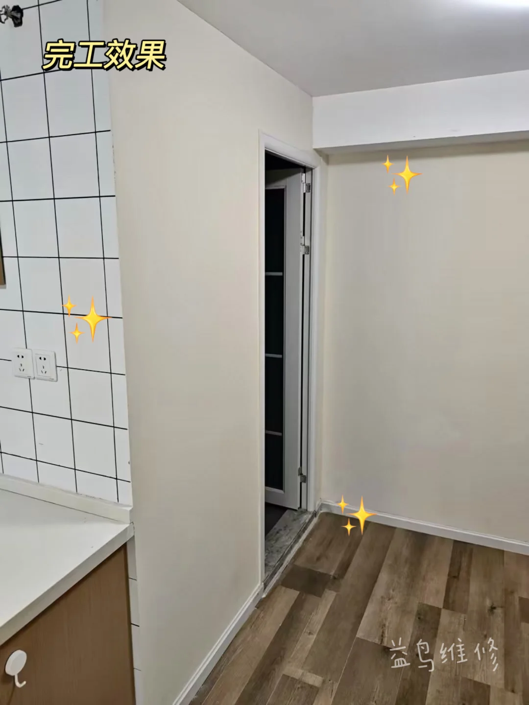 墙面平整光滑,和原墙颜色完美融合,看不出一点修补痕迹,干干净净超治愈