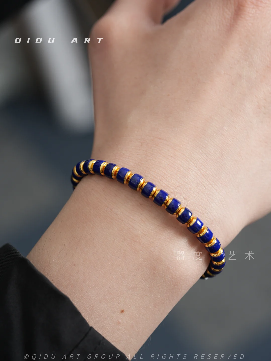 听说青金石太大众了没意思 ? ?[黑薯问号R] 那是没get到这款金盾青金石❗️ 金盾珠型,延伸了青金的金 而青金石本身是少白少金的高品质🫐 是比克莱因蓝更深邃的深海蓝. 是直逼帝王青的蓝... 青金石的显白显贵指数毋庸置疑 !! 无论黄皮/橄榄皮,上手就是白白白 [喝奶茶R] 材质 ⧫ 青金石 器型 ⧫ 金盾 尺寸 ⧫ 𝟱.𝟱𝗺𝗺 圈口 ⧫ 𝟭𝟲.𝟱𝗰𝗺 品质 ⧫ 少白少金