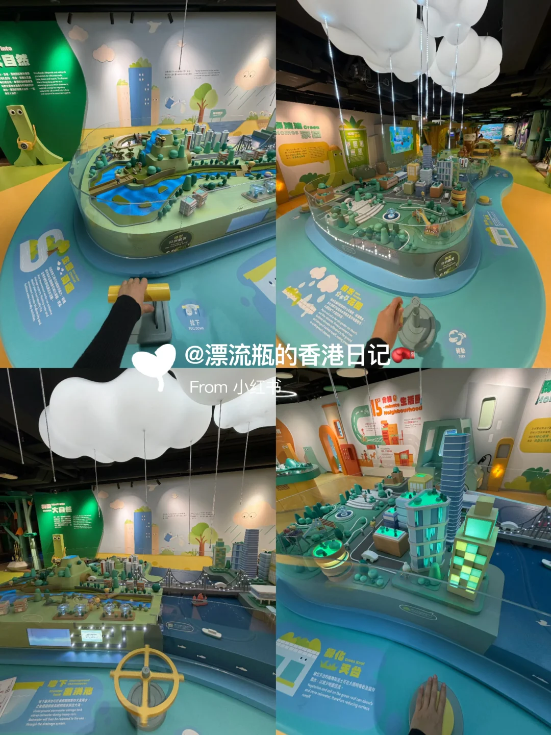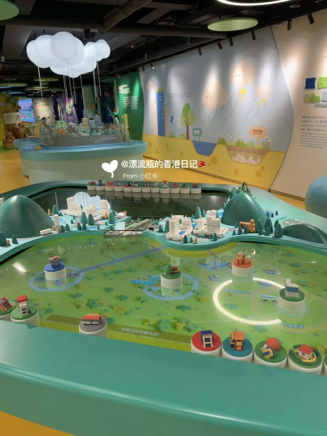 每一个装置都很好玩,很多有趣的角落。城市沙盘里的云落雨☔️是灯光带,很梦幻;还有儿童电车,旁边的充电装置非常逼真,很适合拍照