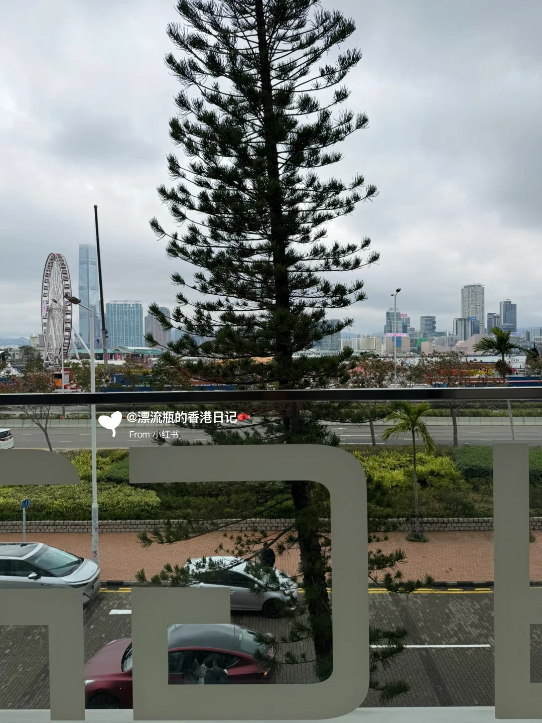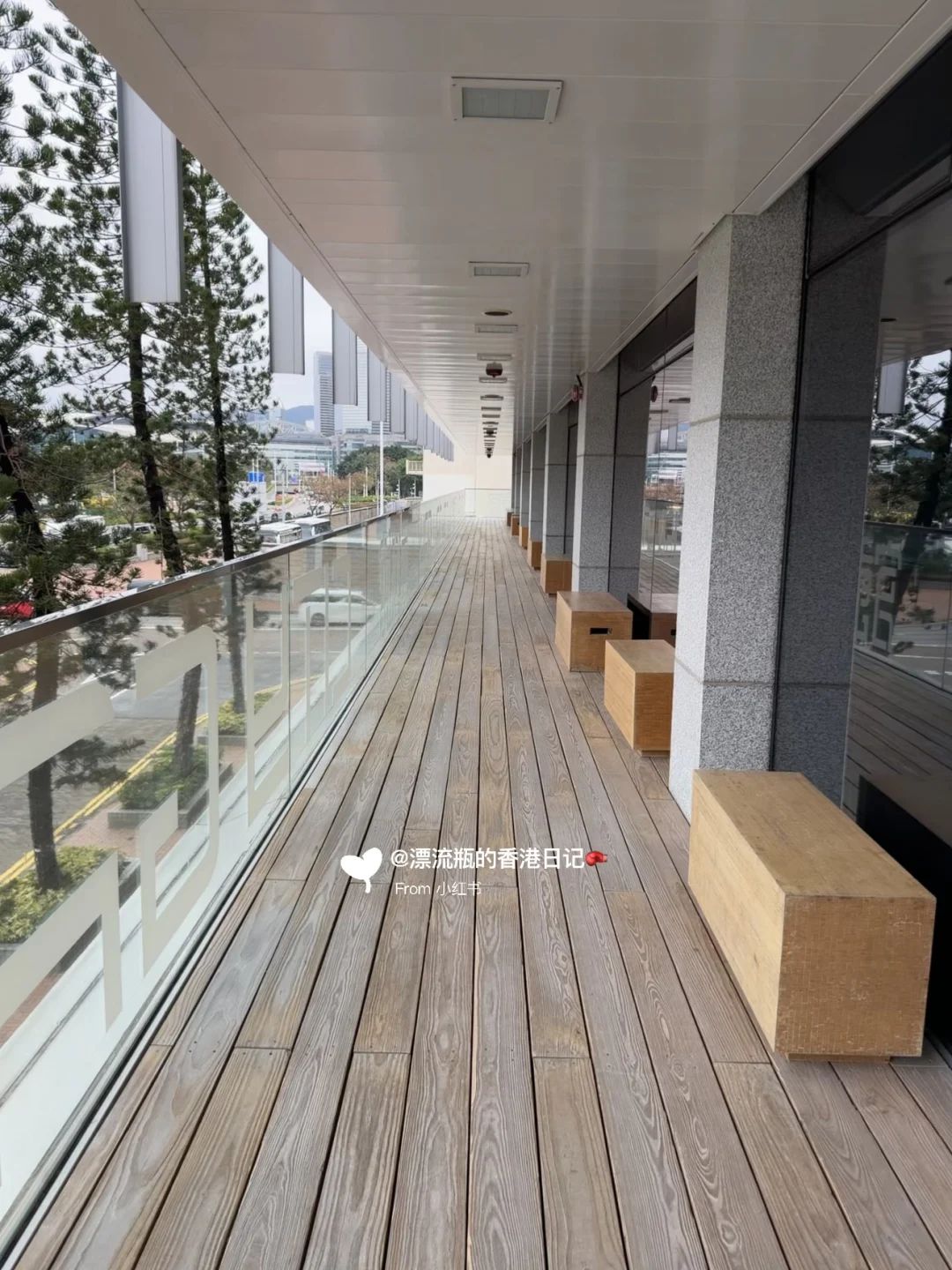 推开门可以走到半露天露台,有一排座椅🪑可以坐着看维港摩天轮🎡景观