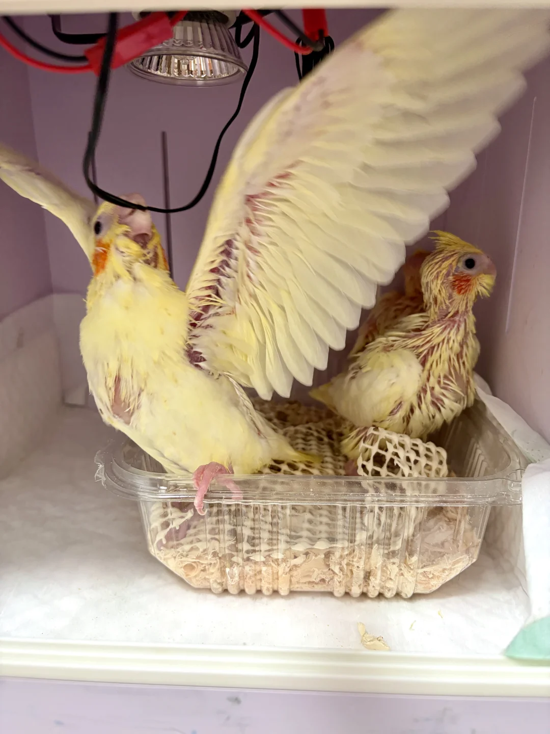 图2图3分别为鸟爸鸟妈,都是当初找了很久的神仙颜值,鸟妈妈穿红衣照片被央视新闻转载过。三小只目前刚满月不久,大体形,明亮黄,已齐毛。A21奶粉搭配益生菌手养喂大,非常亲人,均带金脸/红脸基因,黑眼且不秃头。已经逐渐在断奶学吃中,可以自主啃谷子穗及蛋小米。 有偿,不到5张,广州番禺自提或同城顺风车,不发快递。出同城鸟友,不出养殖户。希望找到真心想养腮红鸡的鸟友~
