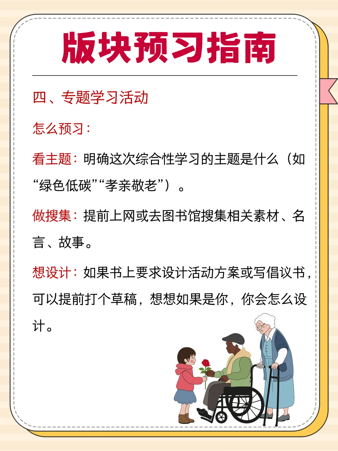 学习专题活动:可以提前上网搜索相关素材、名言、故事,做好积累
