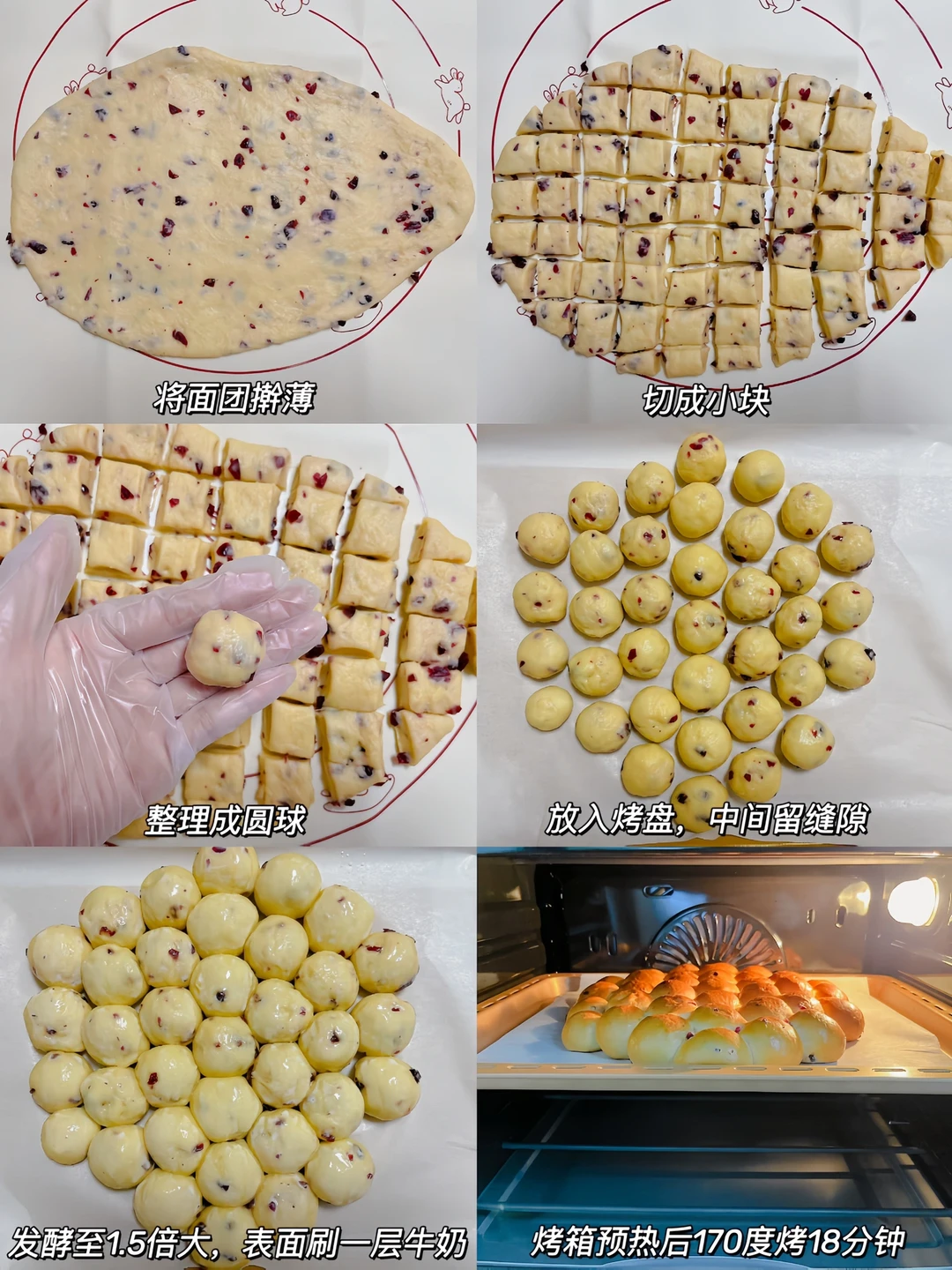 免揉面❗️蔓越莓泡泡小面包|新手零失败