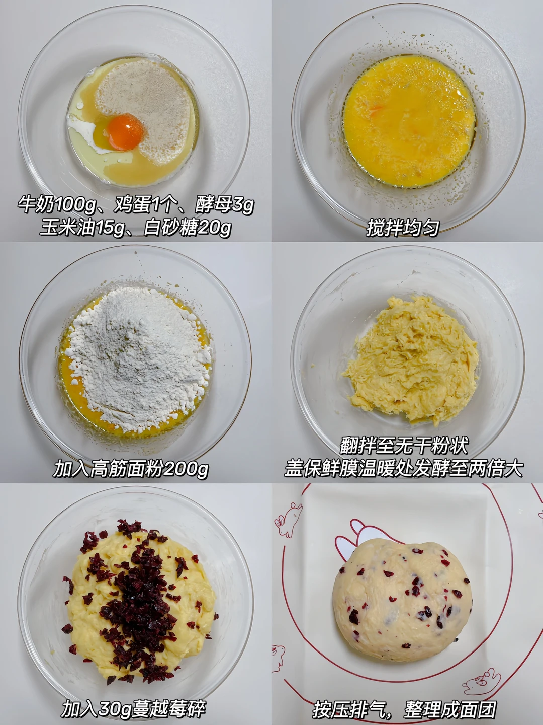 免揉面、零失败的蔓越莓泡泡小面包来咯~外酥里软,奶香混合着蔓越莓的酸甜,一口下去幸福感拉满,全家都爱吃! 👩🏻🍳 高筋面粉200g 牛奶100g 耐高糖酵母3g 白砂糖20g(宝宝吃可省略) 玉米油15g 鸡蛋1个 蔓越莓干30g 🔎具体做法见图