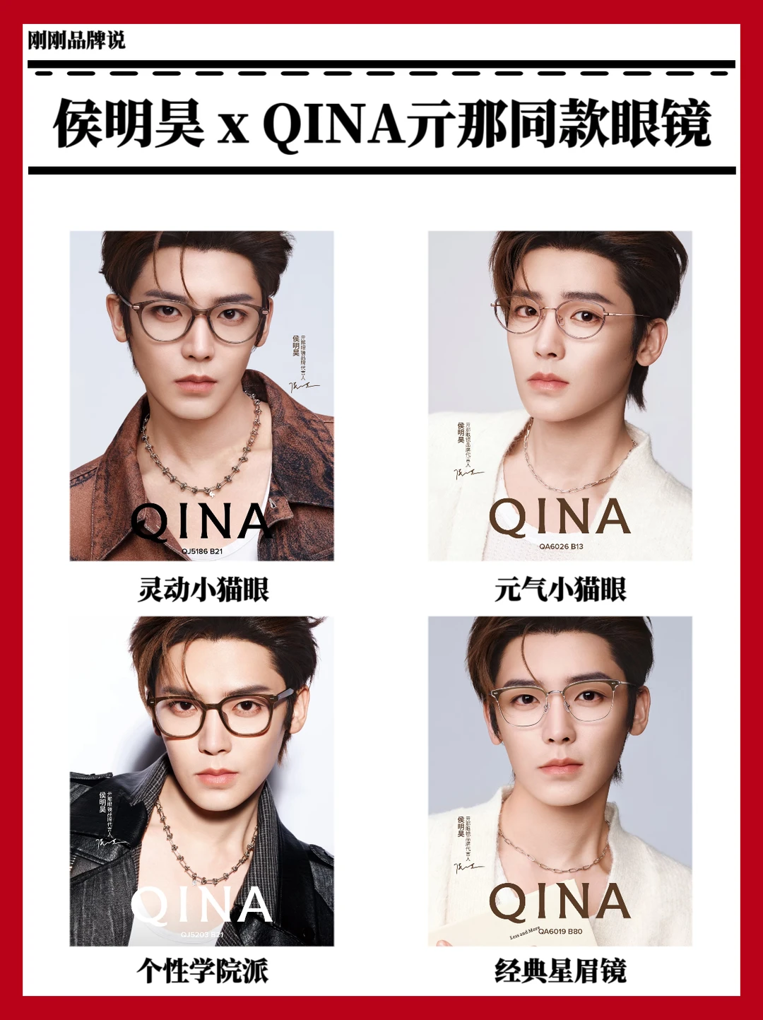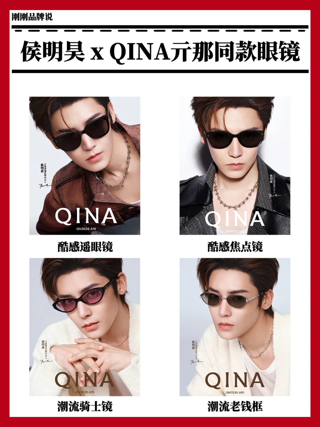 从太阳镜到光学镜,风格全覆盖,显脸小又好搭,颜值与舒适度双在线!追光亓遇,马上HAO看~期待侯明昊与QINA亓那带来更多时尚惊喜,未来一路繁花,好事不断!