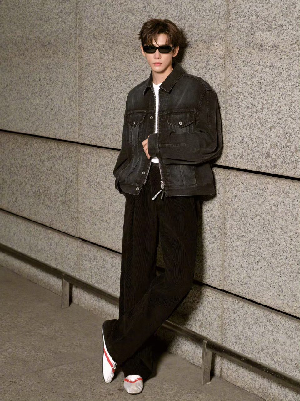 王安宇出发CELINE大秀 他的颜值胜在骨相和比例,头肩比优越,面部折叠度高,冷感和少年感平衡得很好。这种长相很适合时尚镜头,既能驾驭极简的高级感,也能hold住松弛的日常感。