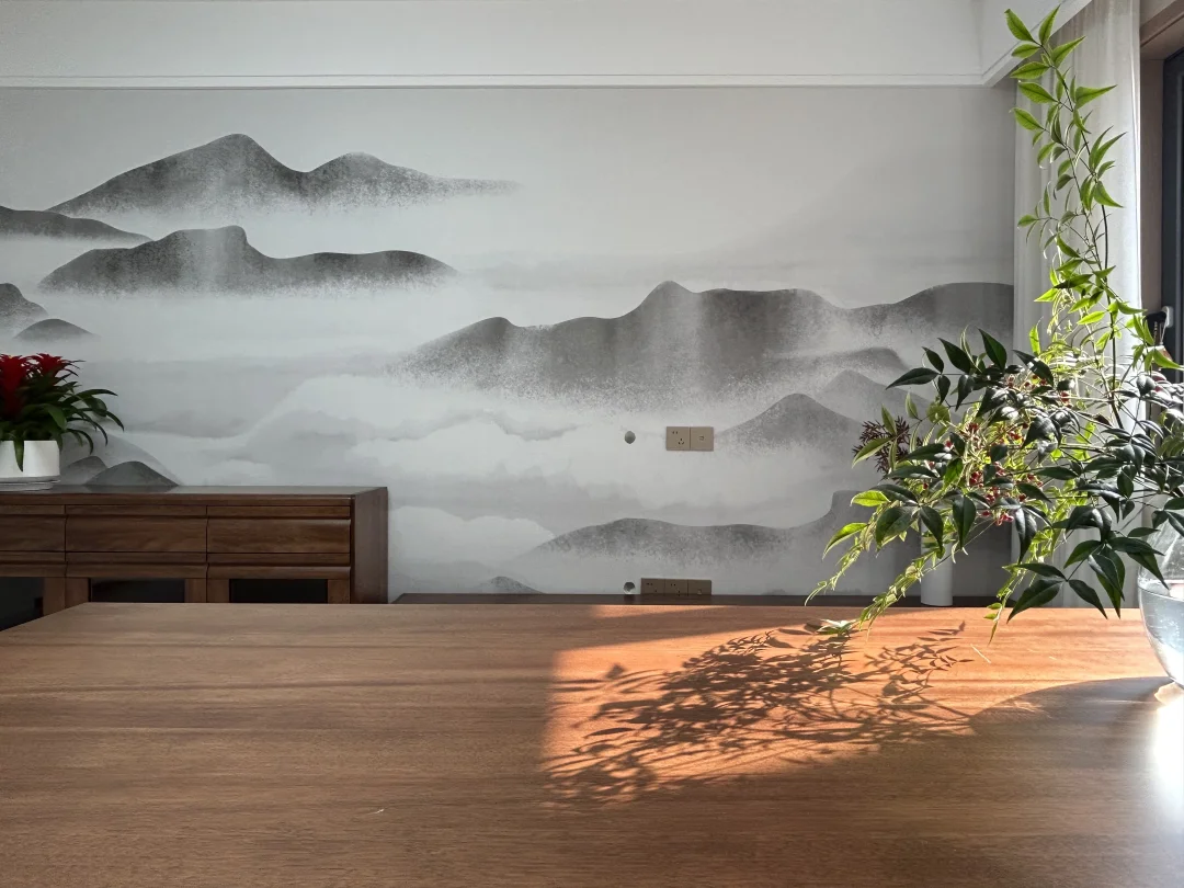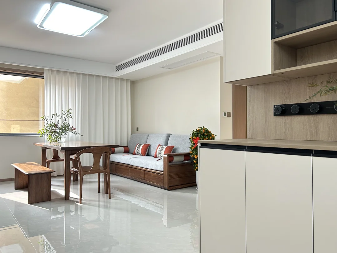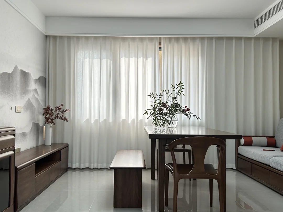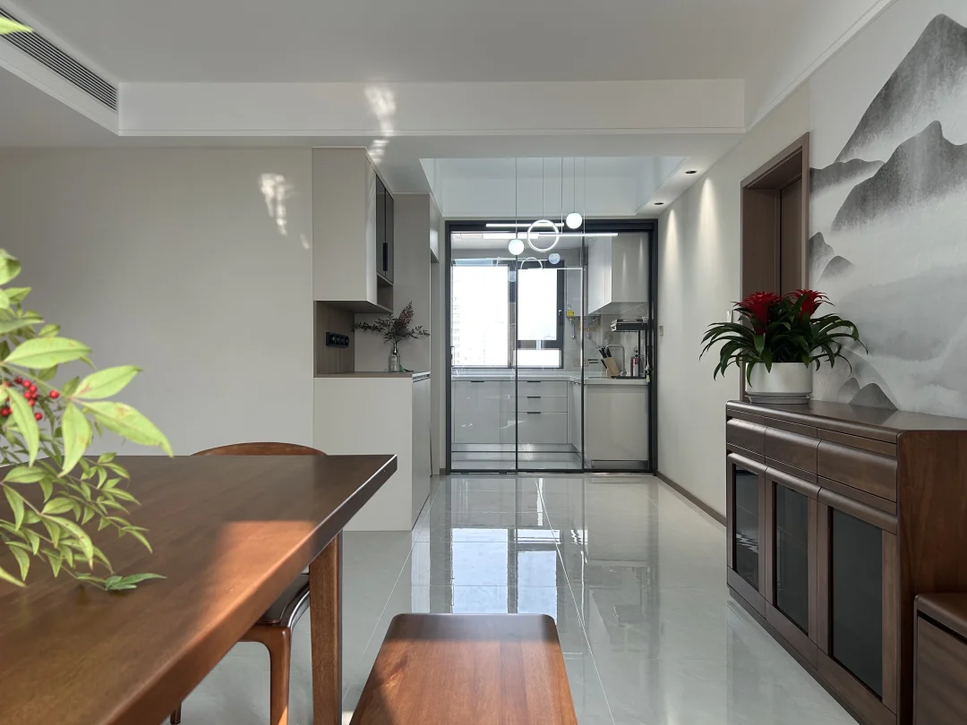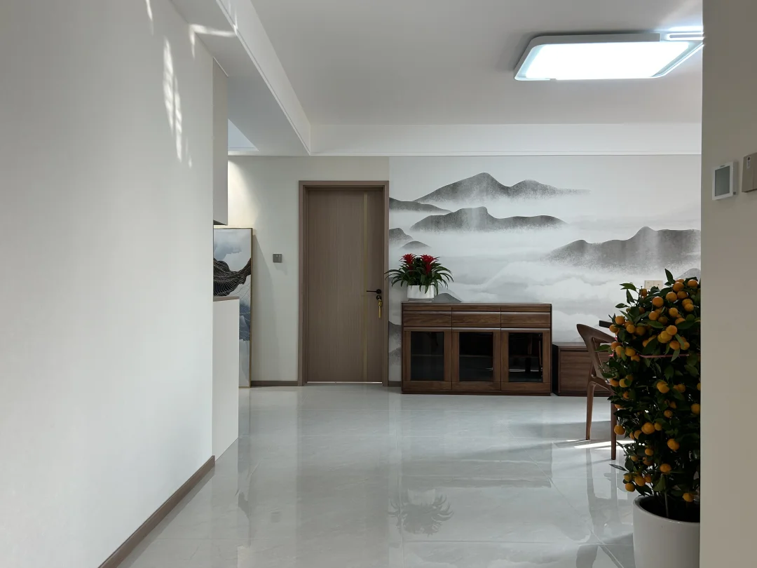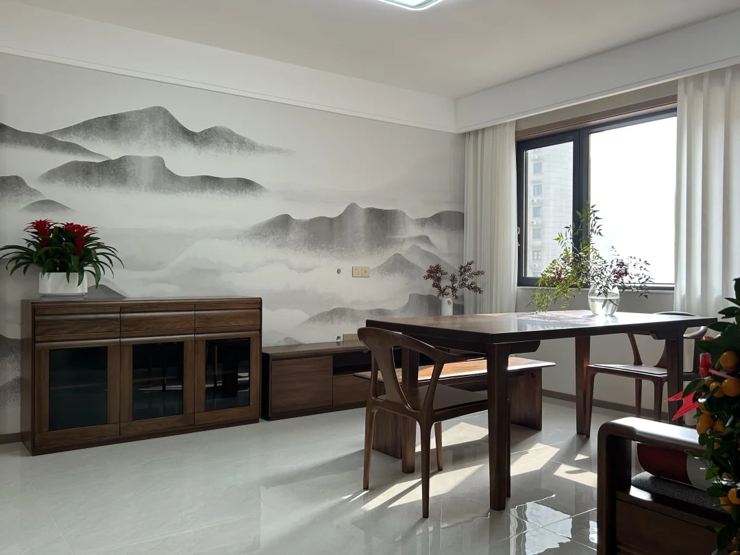 给爸妈装的127㎡老房翻新,终于落地啦✨ 📍改造小区:西安·凤城庭院 🏠房屋面积:127平米 🧱改造类型:旧房全部翻新 🌠装修风格:新中式风 简单舒适,生活动线方便,设计和家具物件都是从【防磕碰、好拿取、好打理】的角度出发。 [赞R]爸妈说,这就是他们理想中“住着舒服、看着顺眼”的家。 把水墨山水搬进客厅,用温润的胡桃木家具勾勒出中式的雅致,又用奶油白的柜体和柔光砖,让传统韵味里多了几分现代舒适。 阳光穿过纱帘,在餐桌上投下植物的剪影;卧室里,软包床头和定制衣柜,把实用与温柔都拉满。
