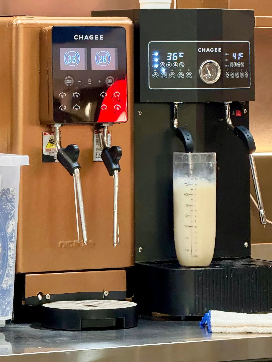 坐在门店,就可以看到整个茶饮制作流程。新一代自主研发的自动化制茶设备陆续被广泛使用,不仅能达到日5000杯、8s一杯的出杯效率,而且其对原料用量、饮品温度更精准的把控使得出餐口味保持稳定。最重要的是制作过程高度卫生,可以避免以往人工操作上遇到的各种问题。