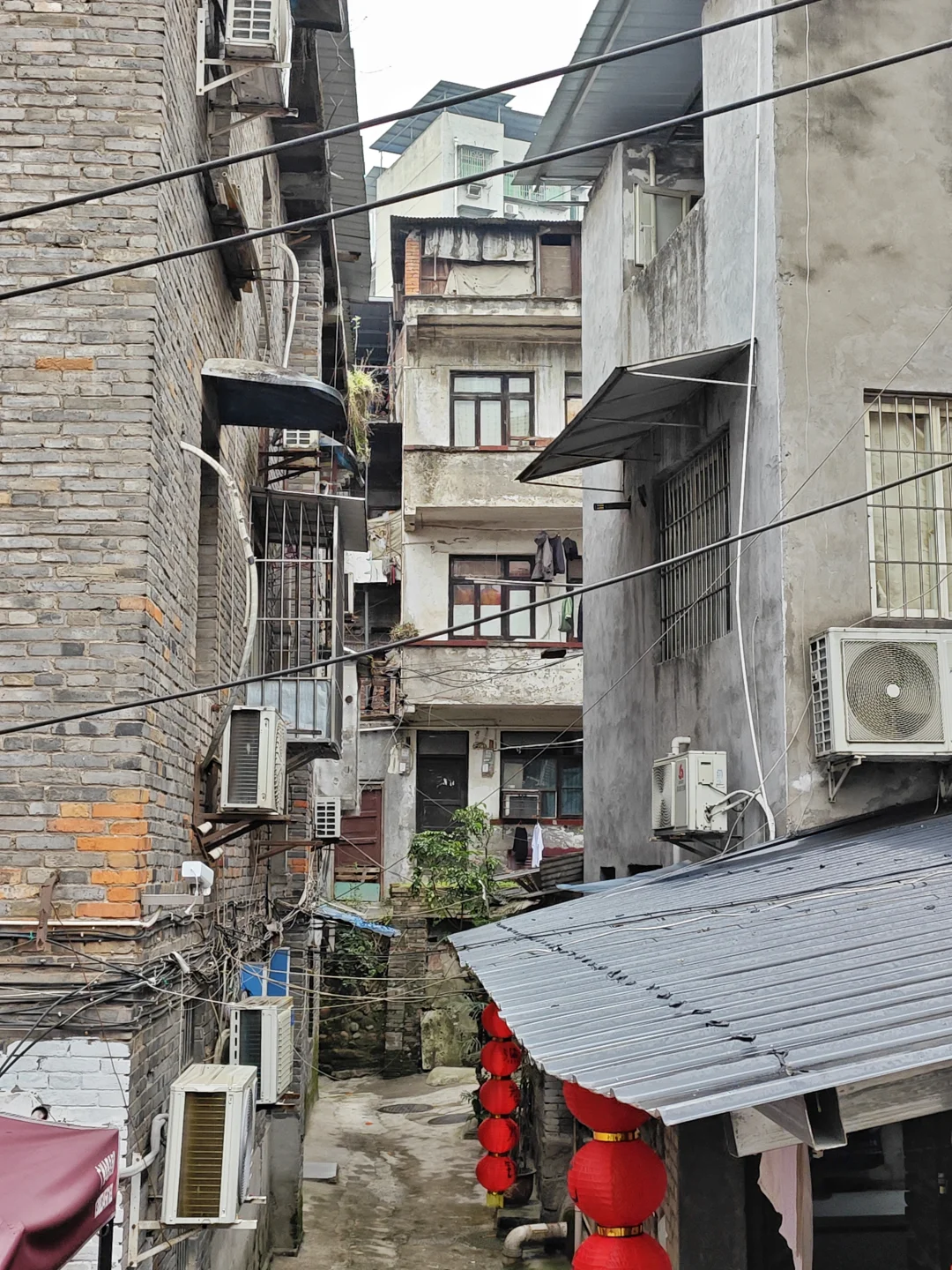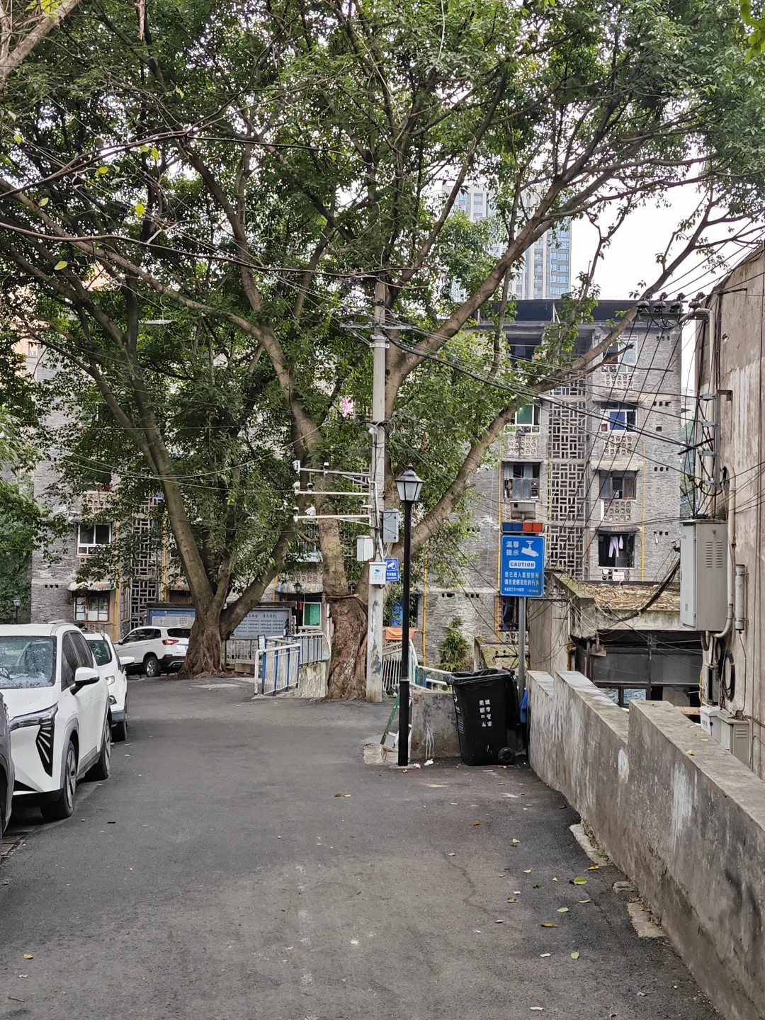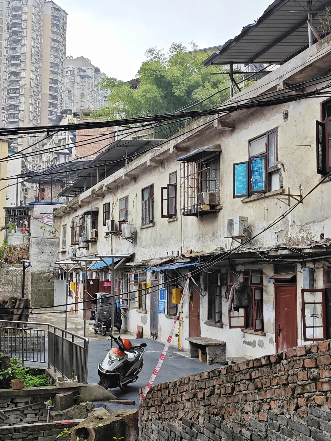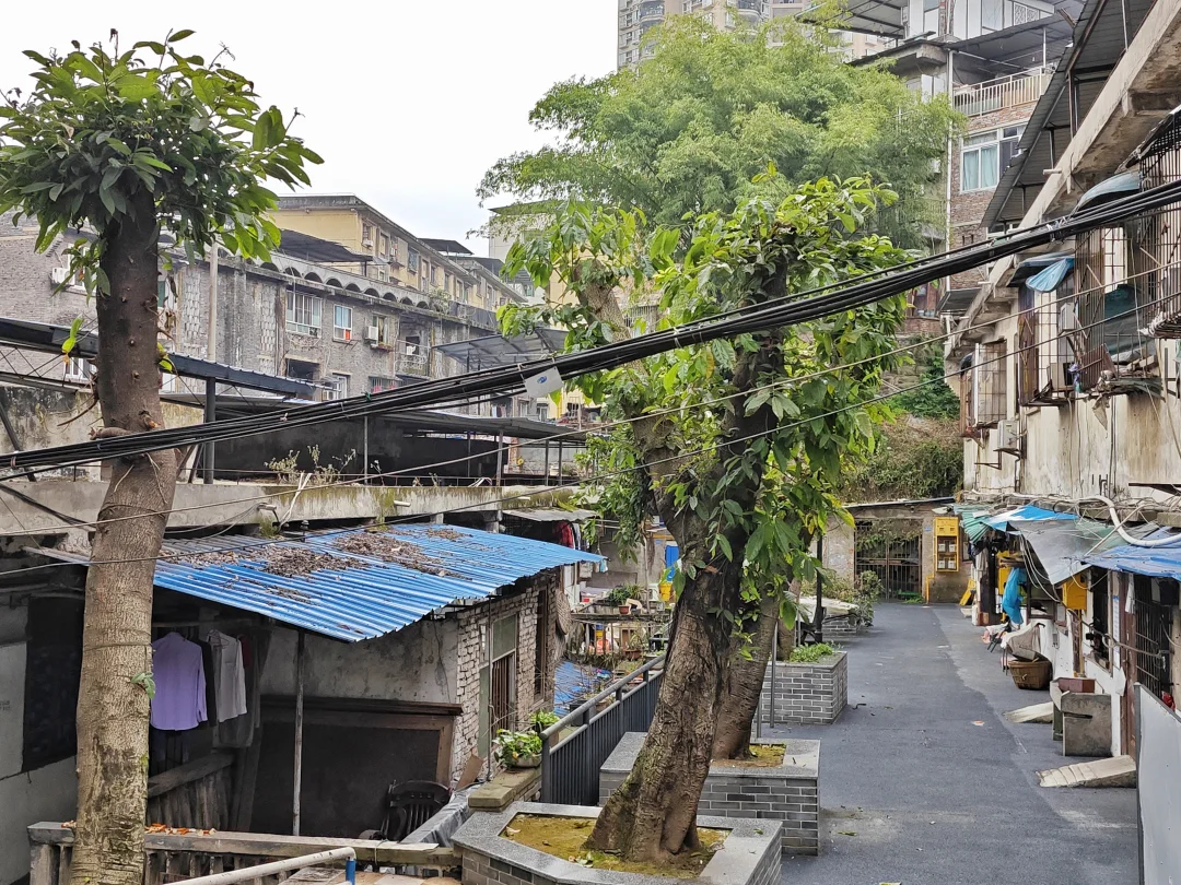 以前曾经发过合建村的一部分,但因为合建村道路四通八达,面积不小,还没有拍完。这次偶然路过,发现还有很多毛纺厂的平房和三层楼的砖木结构筒子楼,加上7层的1980年代家属楼,还是很有老社区的感觉。道路也比较干净,没有什么垃圾,只有正常的落叶。高大的黄桷树也经过了修建,大部分挡住阳光的枝干被剪掉,让老社区敞亮了很多,老房子采光也得到改善。水电气管网看样子也是经过维修的,屋顶基本也都改造过,把漏雨的屋顶都换新或者做了修补,看起来居住条件还可以。不过就是有一点,路上狗屎比较多,时不时能看到几坨,我还不小心踩到一坨,也是无语。