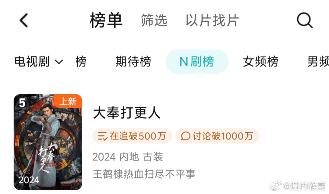 没想到王鹤棣开播了的一年多的大爆剧大奉打更人昨天又上榜日播放量排行榜了,且依旧是