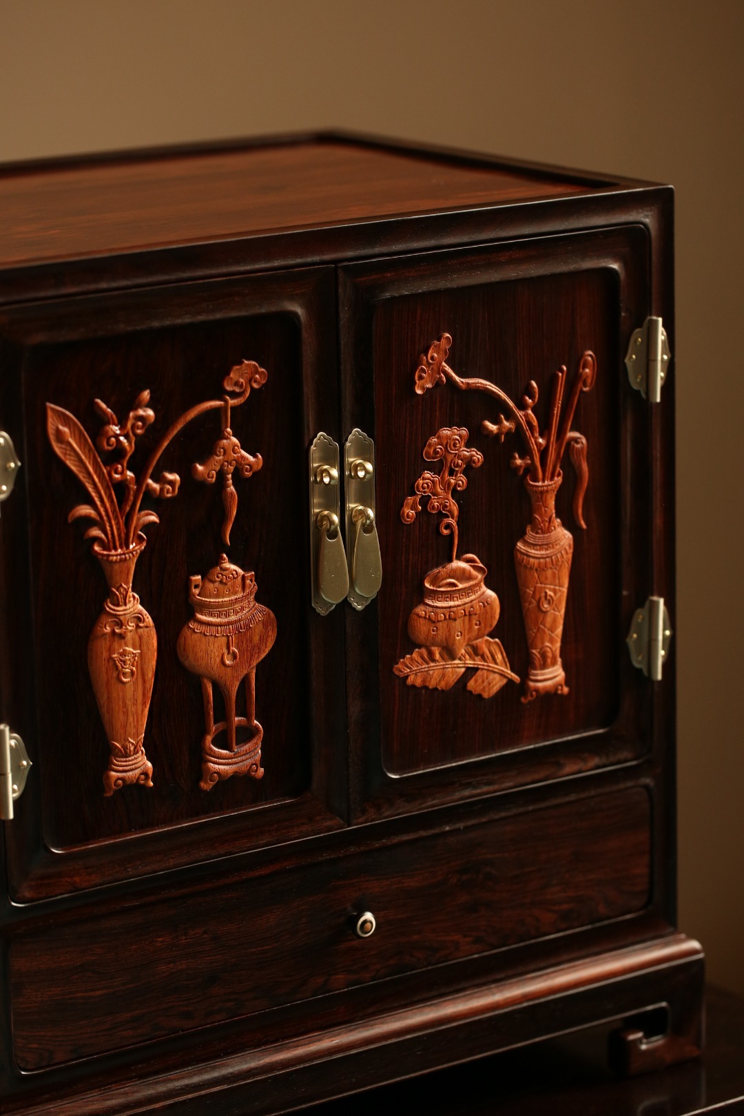 紫光檀『清供 博古图』收纳柜