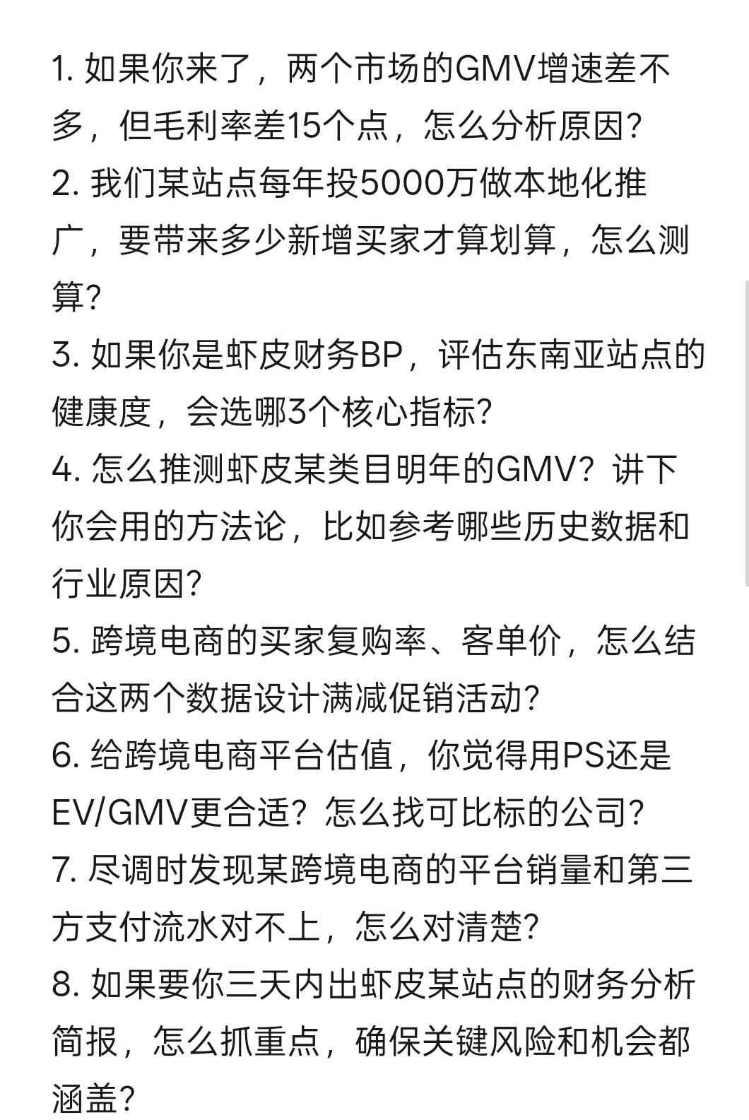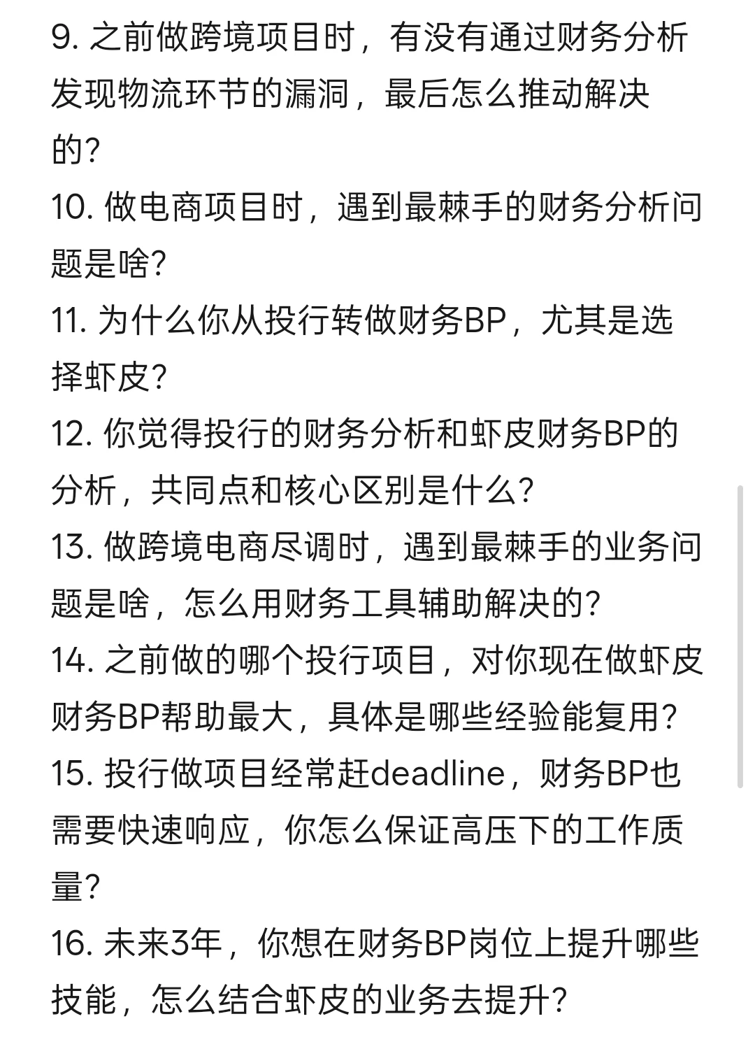 12. 你觉得投行的财务分析和虾皮财务BP的分析,共同点和核心区别是什么?