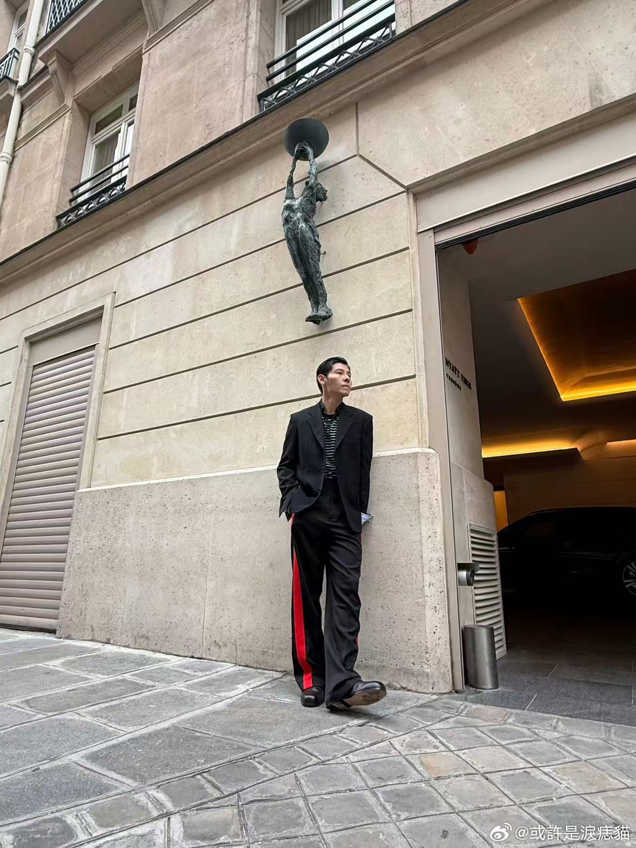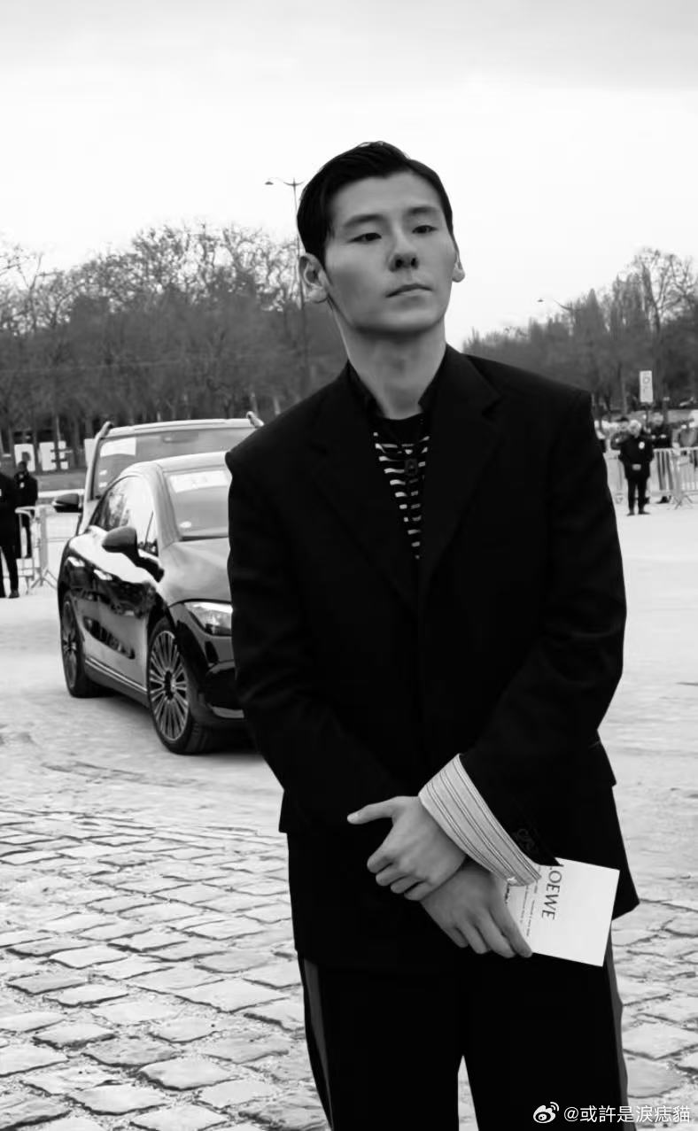 罗意威生图 蒋奇明黑色西装现身秀场,贴头皮造型硬气十足,气场满分,生图也能散发大
