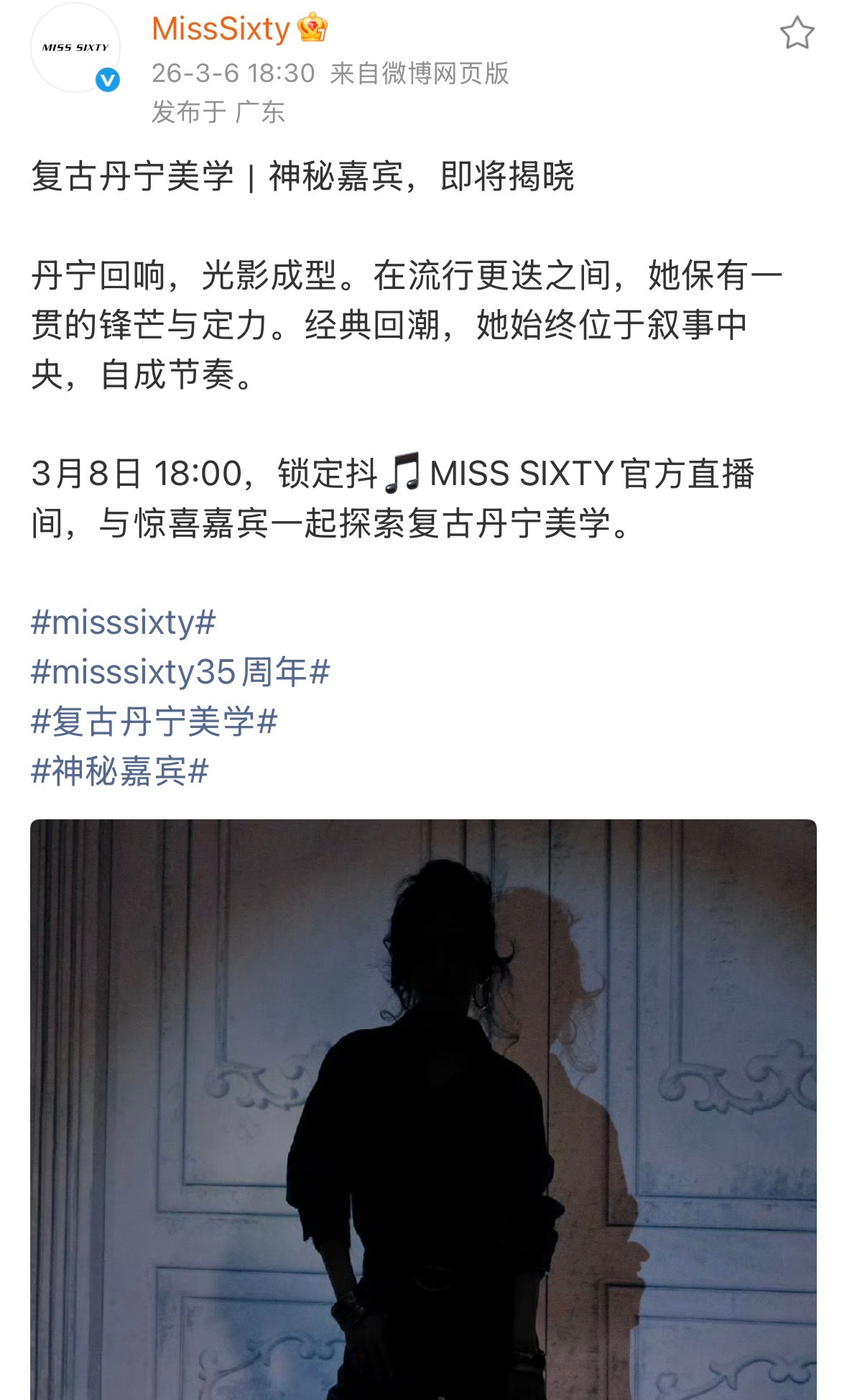 3月7日 卡诗三亚15:003月8日 MissSixty 广州 18:00直播3月12日 凯度上海 14:00直播