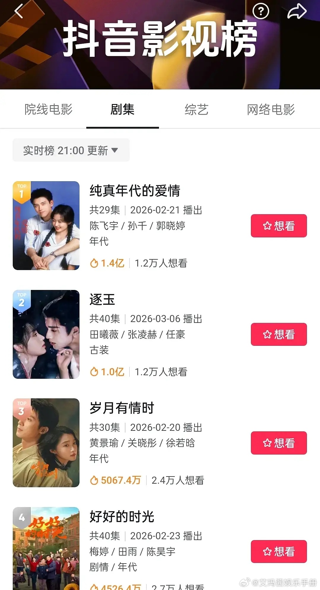 《逐玉》首日开播热度!云包场人数45w,豆瓣热度破千万,🐧评分人数目前21.8w,🥝26年首日热度第一,首日即加广!各项数/据对得上热度吗?逐玉爆开逐玉开播张凌赫田曦薇经纪人逐玉连破纪录