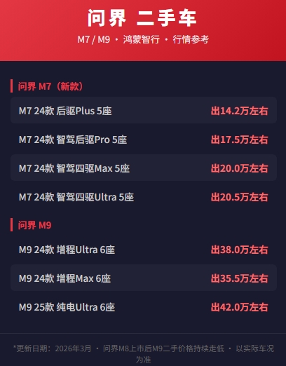 我个人最推荐的是M7 24款Pro版,17万左右有华为智驾,日常体验和三十万的车没啥区别。M9的话说实话目前还不太建议碰二手,因为M8上市之后M9行情一直在跌,最近两个月又降了三四万,等它跌稳了再说。