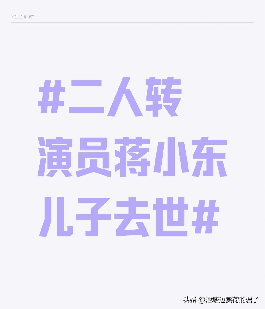 二人转演员蒋小东儿子去世 太让人痛心了!3月6日消息,二人转演员蒋小东28岁的儿子蒋一茗突然离世。正月十五他还和母亲给长辈送花灯,3月5日却骤然离开,蒋小东“全家人痛彻心扉”的讣告让人泪目。 蒋小东是优秀的二人转演员,独创“只用脑袋翻跟斗”,把传统技艺和杂技结合,很受观众喜爱。父子俩长得超像。蒋一铭平时看着开朗,在直播间有说有笑。家属没公布离世原因,有网友猜测和父母离异有关,单亲家庭孩子心灵可能有创伤。这么年轻就走了,实在太可惜!希望蒋小东一家能早日走出悲痛。