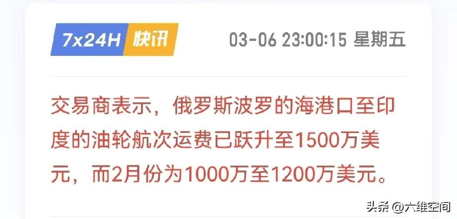 川普可能真的是普京的好朋友,美国今天宣布解禁印度可以买俄罗斯石油了,因为伊朗局势,让国际油价暴涨,不利于美国控制通胀,所以美国只能放开印度买俄罗斯石油,俄罗斯的影子船队,在海上飘着900多万桶石油,第一时间就卖给印度,印度简单加工后,又卖给欧洲,缓解世界缺油的局面,印度疯狂吓到,导致现在俄罗斯波罗的海港口到印度的事油轮运费已经开始暴涨了!
