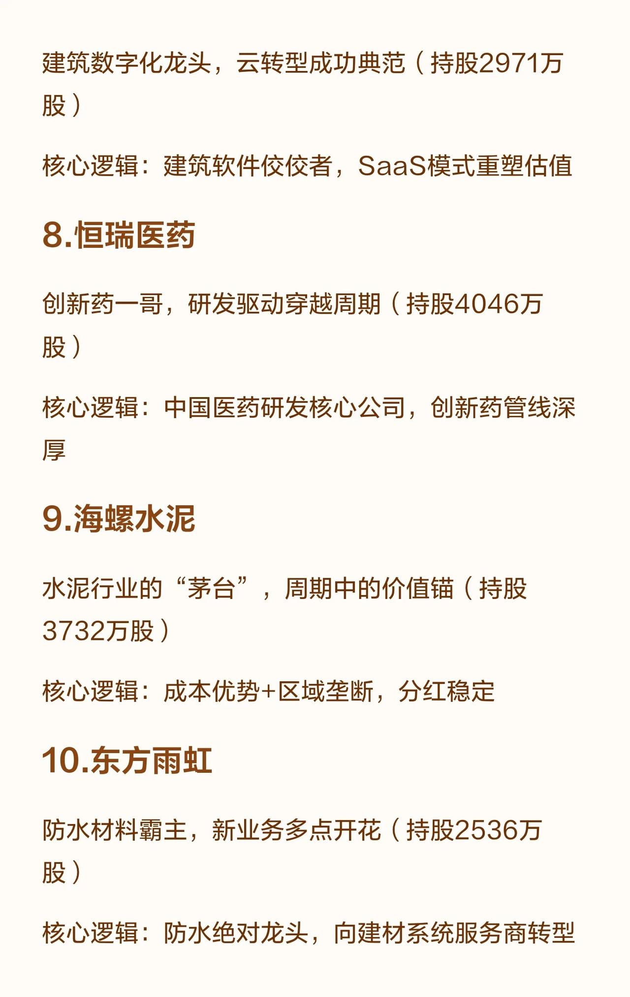 高瓴资本重点持仓的10家核心公司,覆盖家电、新能源、医疗、建材等多个行业龙头。 这些公司被高瓴视为中国制造的名片、各赛道的绝对龙头或隐形冠军,核心逻辑在于看好其技术壁垒、品牌溢价、现金流优势及转型潜力。