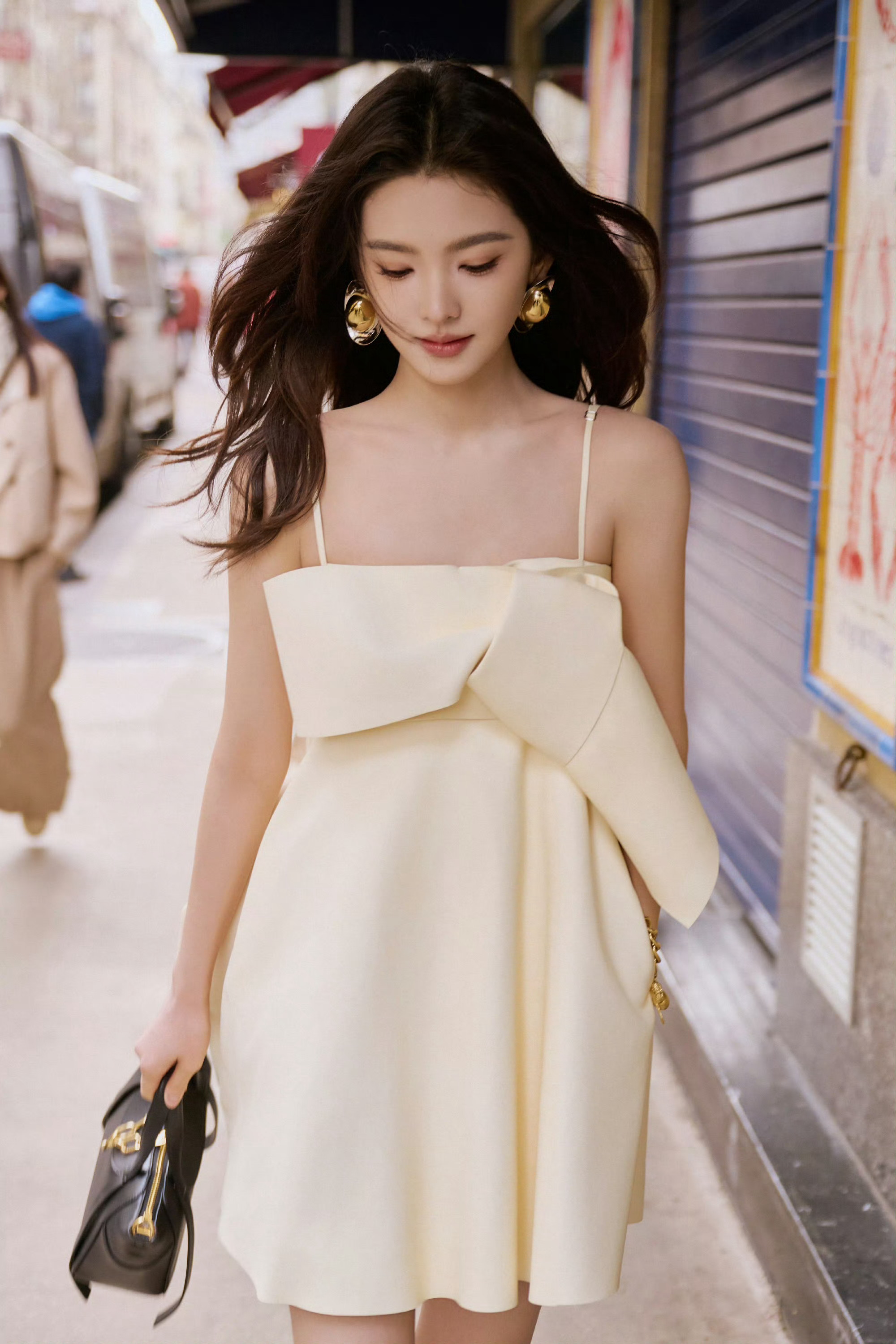 章若楠黄色蝴蝶结吊带裙章若楠一定要美成这样嘛,轻松拿捏时尚感!