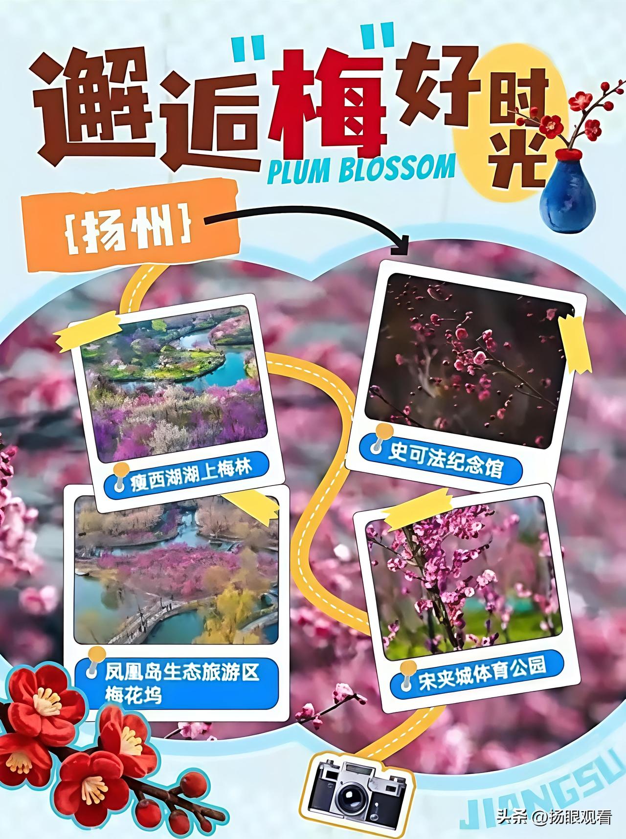 扬州瘦西湖湖上梅林🔥上榜省级赏梅地图!春日赏梅天花板来啦🌸 因为“水韵江苏”赏梅地图正式上线 扬州瘦西湖湖上梅林成功上榜! 我觉得扬州满城春色藏不住了! 快来扬州邂逅春日限定“梅”好时光🌿