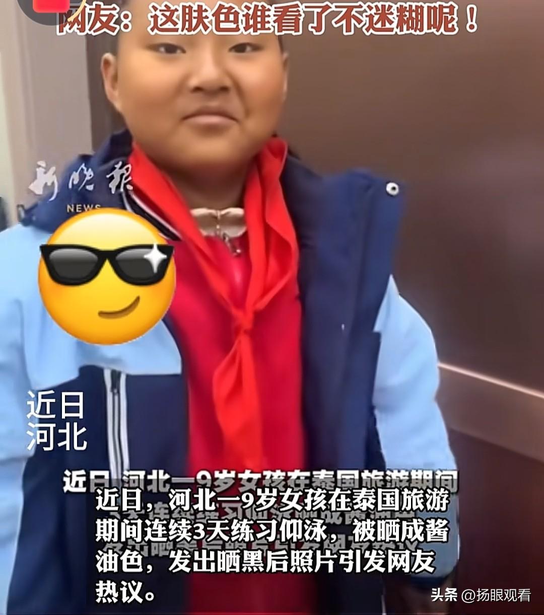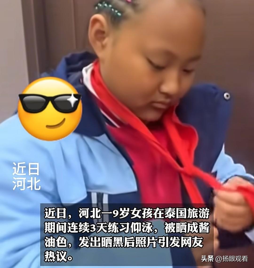 笑疯!9岁女孩泰国学仰泳3天晒成酱油色😂 近日河北有一9岁小女孩去泰国连续3天学仰泳,直接晒成酱油色🌚 回国过海关,被工作人员灵魂拷问:你有中国护照吗? 女孩亲自澄清:没特效!真的晒这么黑! 网友:这肤色谁看了不迷糊! 我真的笑到打鸣!