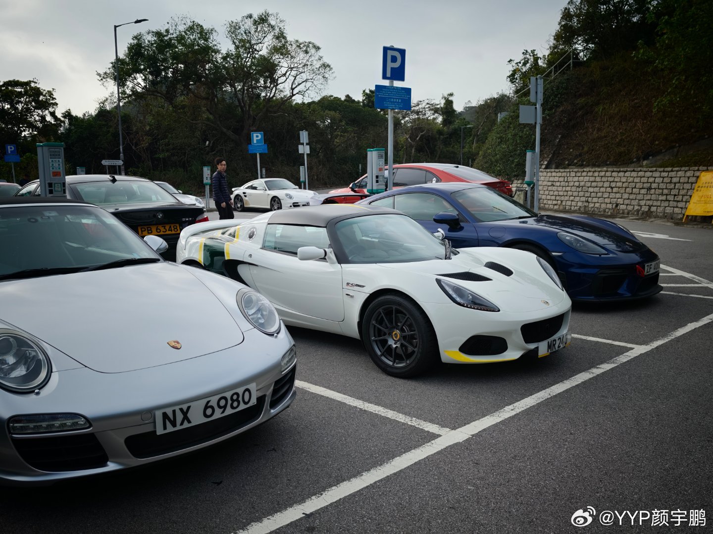 香港石澳停车场,没错,就是山路镜头的一个停车场,每周六日清晨都会有爱车人士开自己