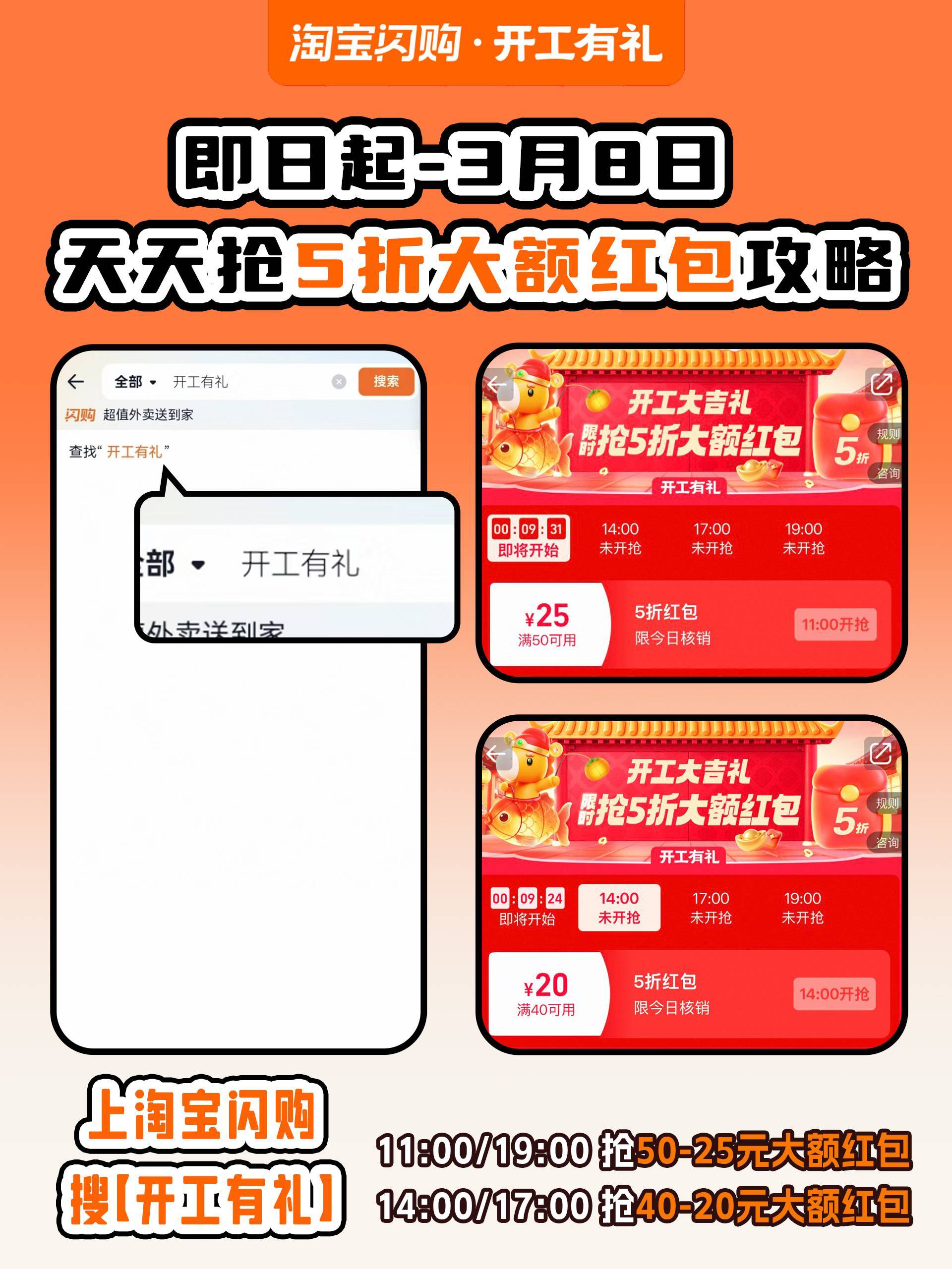 📝打工人外卖自由计划:淘宝闪购抢5折红包🧧🔍【开工有礼】,四个整点不缺席⏰50-25、40-20,稳稳省下外卖钱🍚淘宝闪购5折开工红包拯救打工人淘宝闪购开工有礼