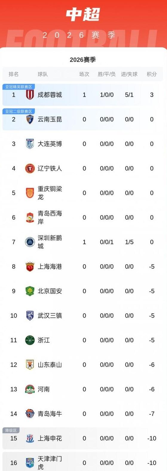 成都蓉城不能干积分榜榜首一轮游这事了!去年蓉城两次登顶积分榜都是一轮游,本赛季就