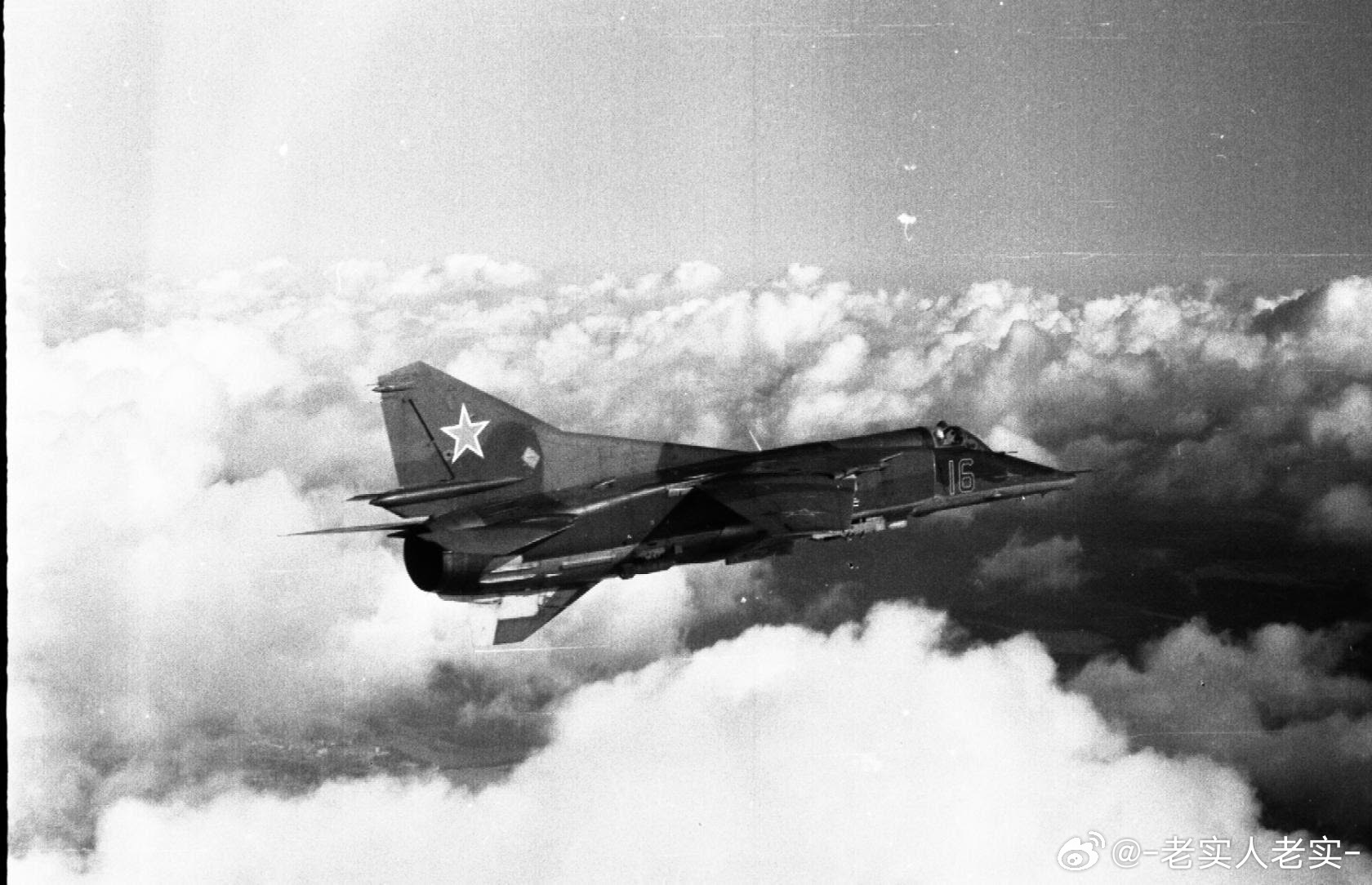 驻东德苏军西部集群第19近卫战斗轰炸航空团的米格27进行飞行训练的照片,摄于80年代。米格27和苏17一样,是三战爆发后苏军对西方进行对地攻击的主力军事历史全触达外军影像每天认识一件兵器