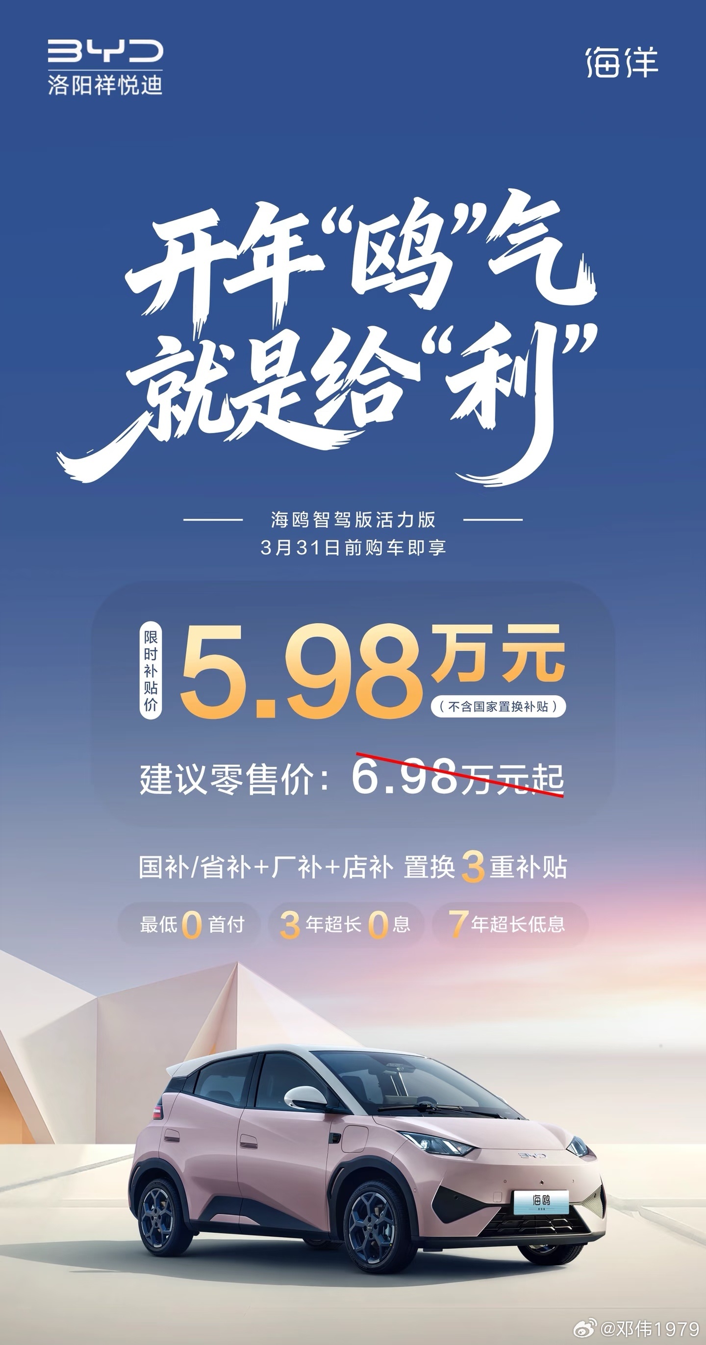 马年开新局海洋超给利海豚海鸥来了史上最强金融政策首付2.3万元起,日供低至29元7年低息,3年0息7年低息更给力 比亚迪