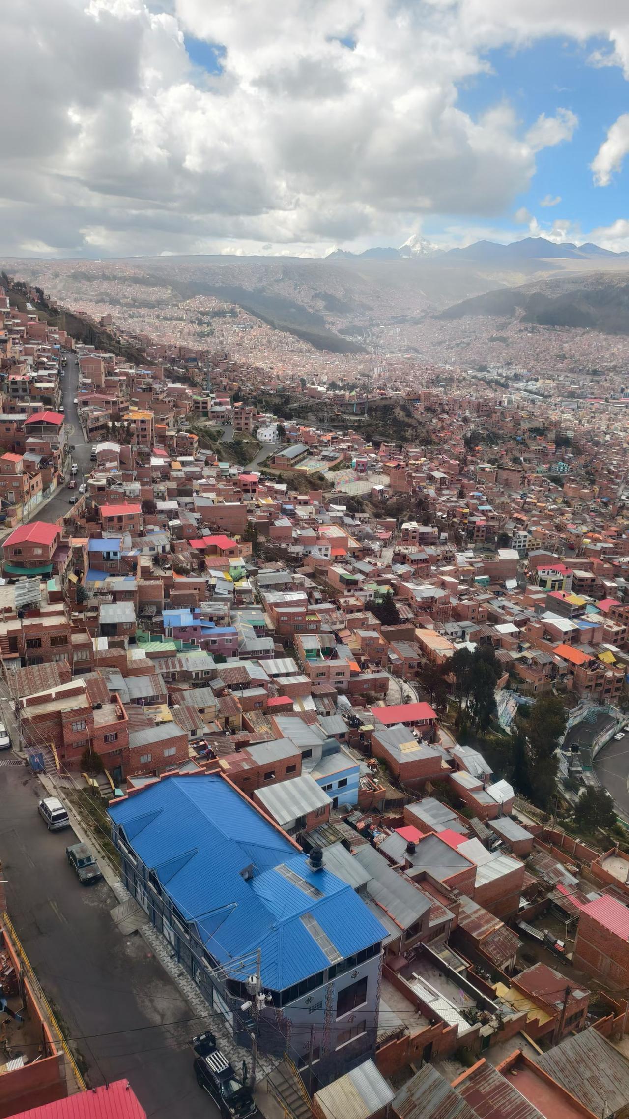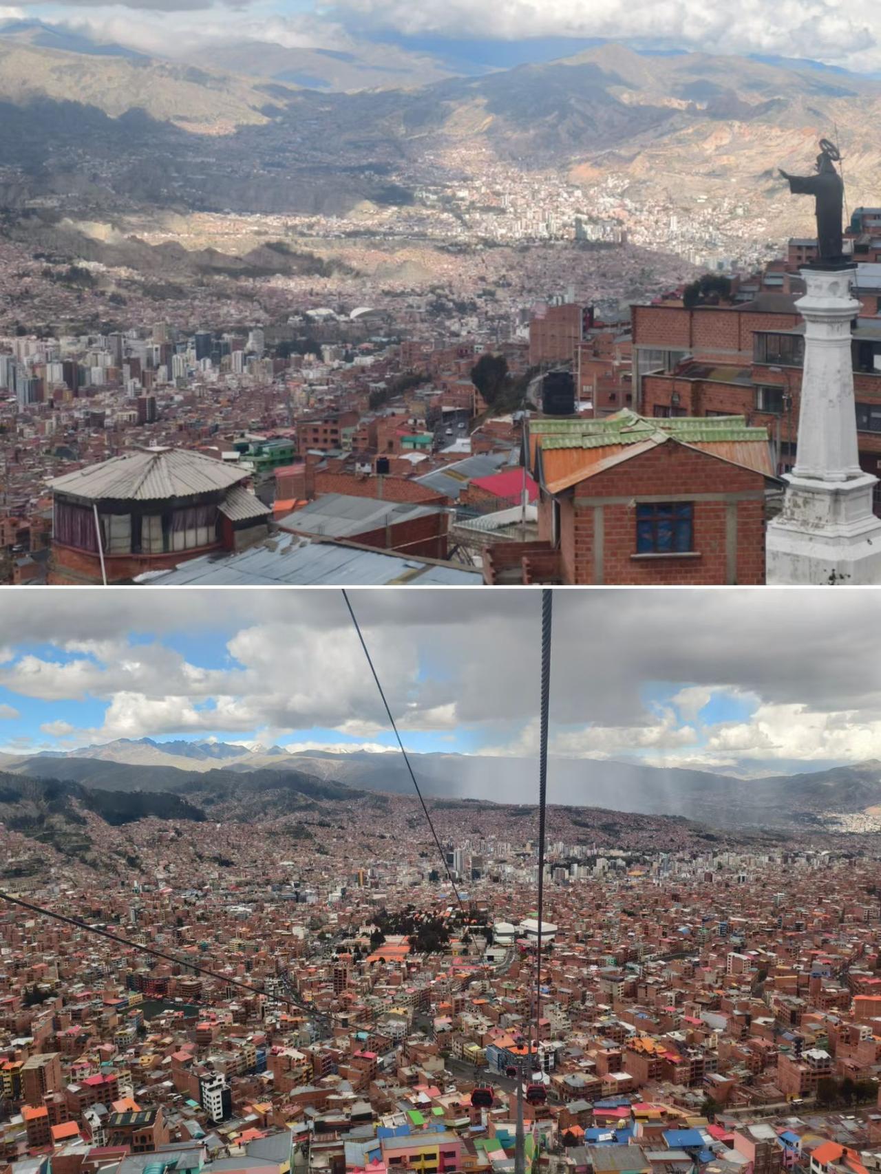 南美之行第二站:玻利维亚🇧🇴首都拉巴斯 世界上最高的首都,地形好像一只碗,四周海拔约4000米,中间市中心3600米。乍一看好像色达,当然比色达大很多,但色彩远没有色达漂亮,毕竟这里是南美最穷的国家。 不过拉巴斯用缆车作为交通的方式很独特,在缆车上欣赏整个城市还是蛮震撼的,低海拔的楼房是富人区,高海拔的平房是贫民区。晚上的拉巴斯很梦幻,难怪有人说“白天像砖厂,晚上像香港”。