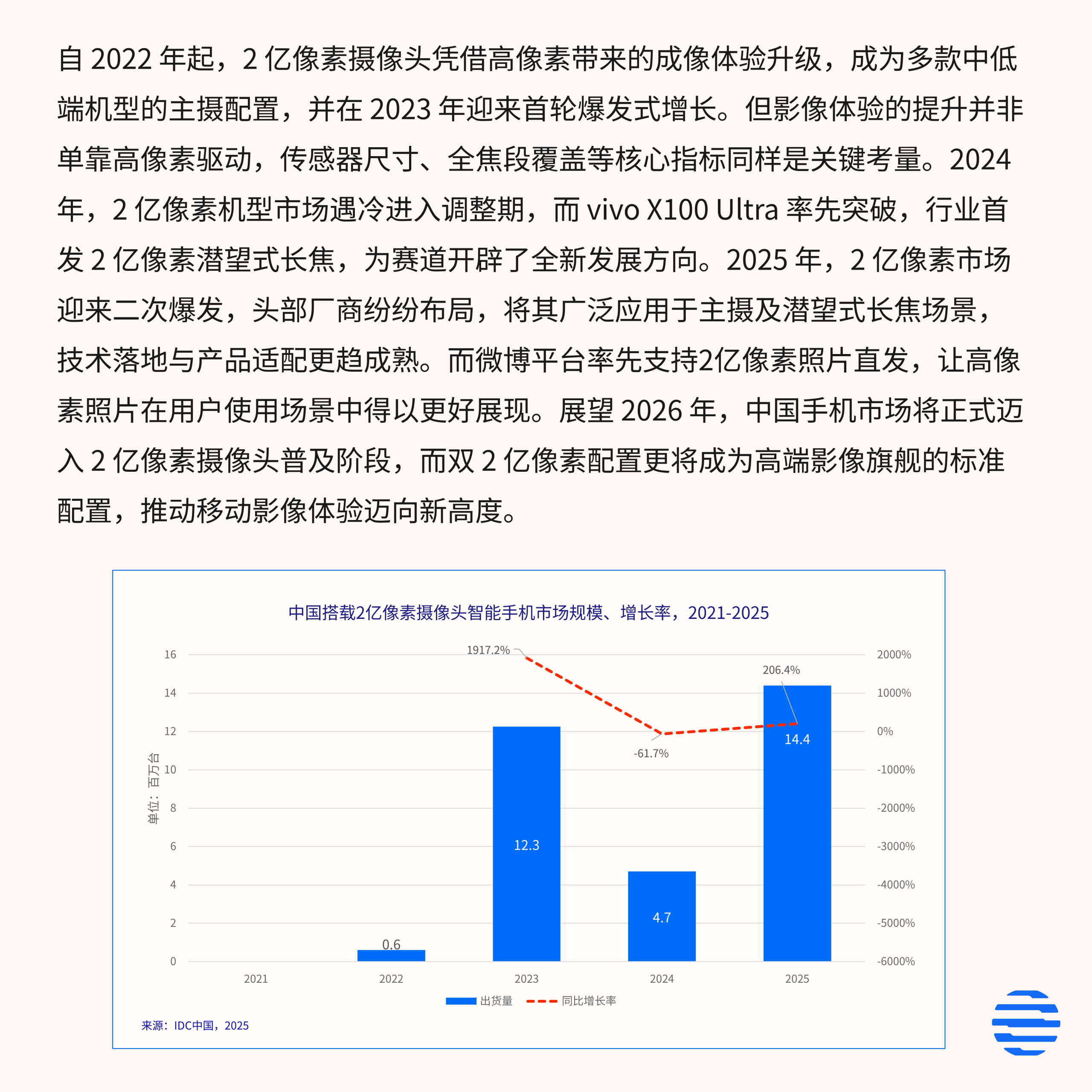 IDC报告显示,2025年中国600美元以上高端市场中,vivo以38.3%的份额位居榜首,凭借2亿像素潜望长焦的首创优势,在高端2亿像素细分市场拿下超38%份额,远超小米、OPPO等同行,奠定高端影像领导地位。