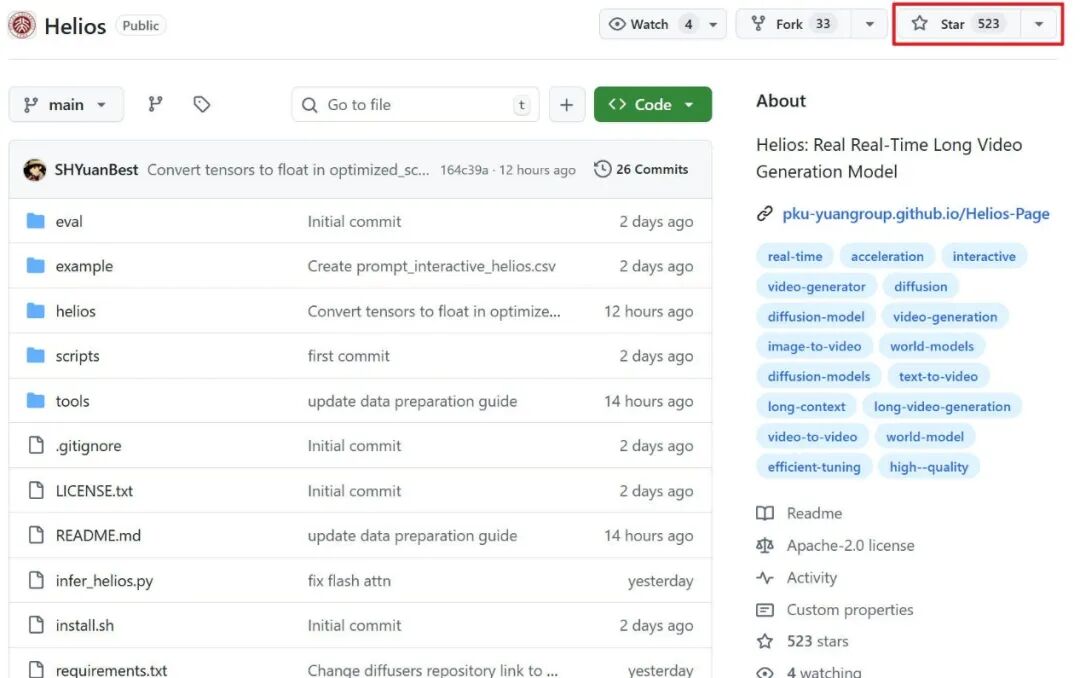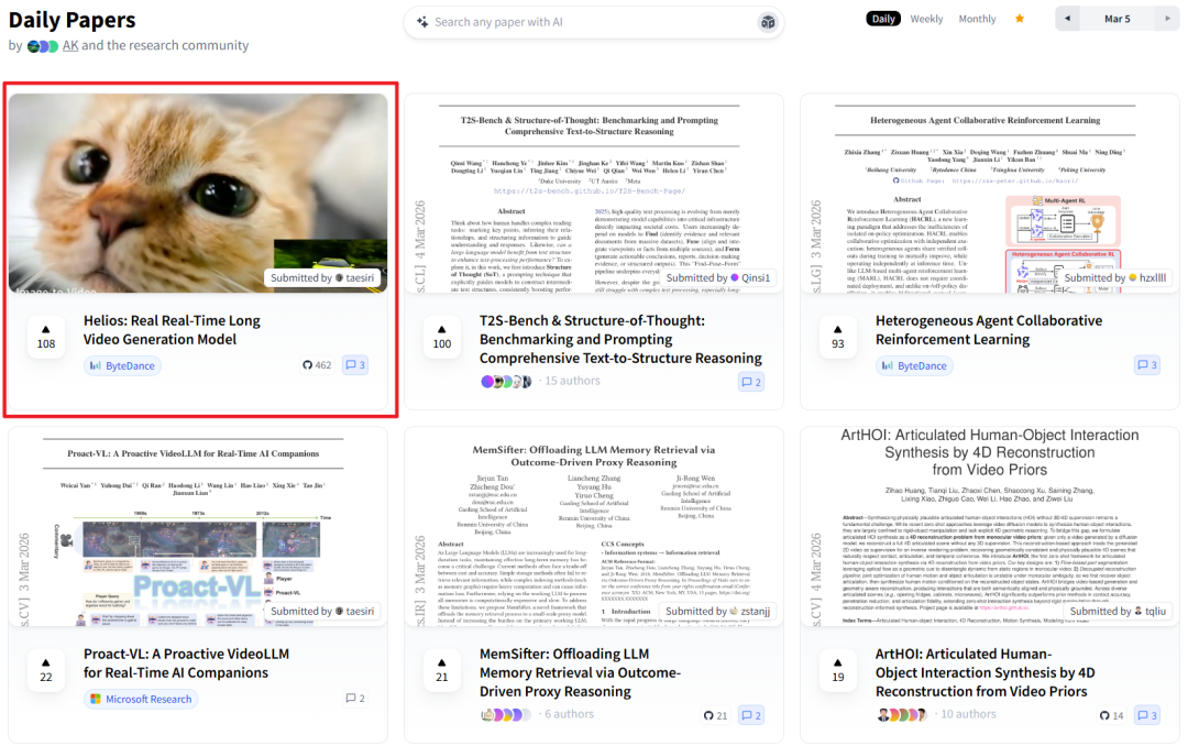 如此卓越的表现和强劲的生态支持,也让Helios成功登顶昨天的HuggingFaceDailyPapers。而在GitHub上,这个刚刚发布一两天,还没得到广泛宣传的开源项目的star数已经超过了520!